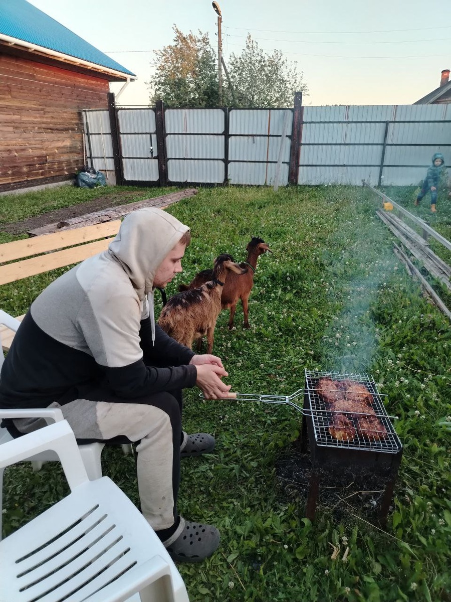 🔥 Фоточки завалялись с прекрасного субботнего вечера ❤️ Спасибо добрым соседям, в наше отсутствие они покосили наш участок и теперь у козочек много свежего сена есть 😋