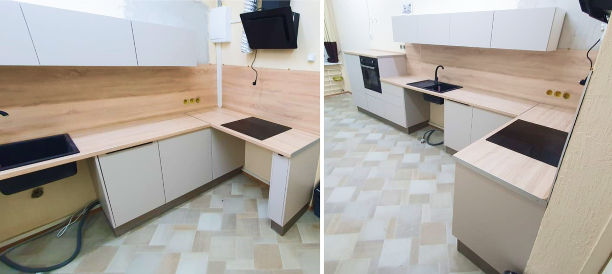 Компания «Доступная страна» — ведущий российский производитель и поставщик оборудования для создания безбарьерной среды, инклюзивного образования и реабилитации. Одно из направлений нашей работы — создание тренировочных квартир. Это специально оборудованные помещения, где подопечные могут в безопасных и адаптированных условиях учиться готовить, убирать, ухаживать за собой. Недавно наша команда завершила подобный проект по созданию полноценного обучающего пространства для освоения бытовых навыков. Рассказываем, как это работает на практике. Плёсский дом-интернат для престарелых и инвалидов (Ивановская область) обратился к нам с задачей создать тренировочную кухню для подопечных с различными формами инвалидности, включая пользователей кресел-колясок. Задача была не просто поставить технику и мебель, а создать функциональное пространство, где люди смогут восстанавливать самостоятельность в быту — готовить, убирать, планировать действия. ✅ Кухонный гарнитур 4×1,6 м — разработан с учётом эр