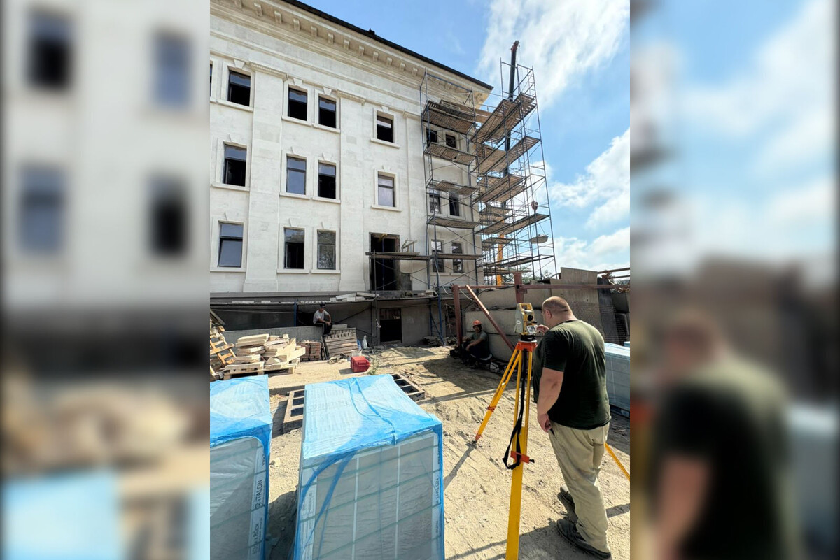 В Мариуполе ведутся активные работы по реставрации Драматического театра. Строители из Петербурга уже сняли баннер с фасада, открывая горожанам обновлённый внешний вид здания. Внутри театра устанавливаются гипсокартонные перегородки, формирующие будущие залы и служебные помещения. Проводится штукатурка стен, а на пол укладывается прочная керамогранитная плитка, обеспечивающая долговечность покрытия.