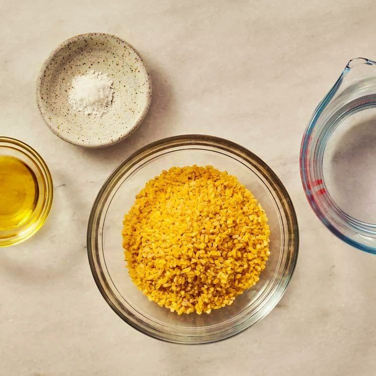 Устали от привычных круп? Булгур – ваш новый лучший друг! Этот простой рецепт – идеальная основа для сотни блюд. Легкий, пушистый, с нежным ореховым привкусом, он заменит рис или киноа в салатах, гарнирах и начинках. Готовится быстро, а пользы – море! В небольшую кастрюлю налейте воду (или бульон). Доведите до кипения на среднем или сильном огне. Всыпьте в кипящую воду булгур. Накройте кастрюлю крышкой. Сразу убавьте огонь до слабого или среднего слабого (чтобы сохранялось легкое кипение). Варите булгур под крышкой ровно 12 минут. Снимите кастрюлю с огня. Не открывая крышку, оставьте булгур настояться еще 10 минут. Это ключевой шаг для того, чтобы он стал пушистым и впитал всю влагу. Откройте крышку. Сбрызните булгур оливковым маслом и посыпьте солью. Аккуратно взбейте булгур вилкой, чтобы отделить зерна, равномерно распределить масло и соль. Пищевая ценность (на порцию): *** Рецепт легко удвоить или утроить. Главное правило - жидкости должно быть ровно в 2 раза больше по объему, ч