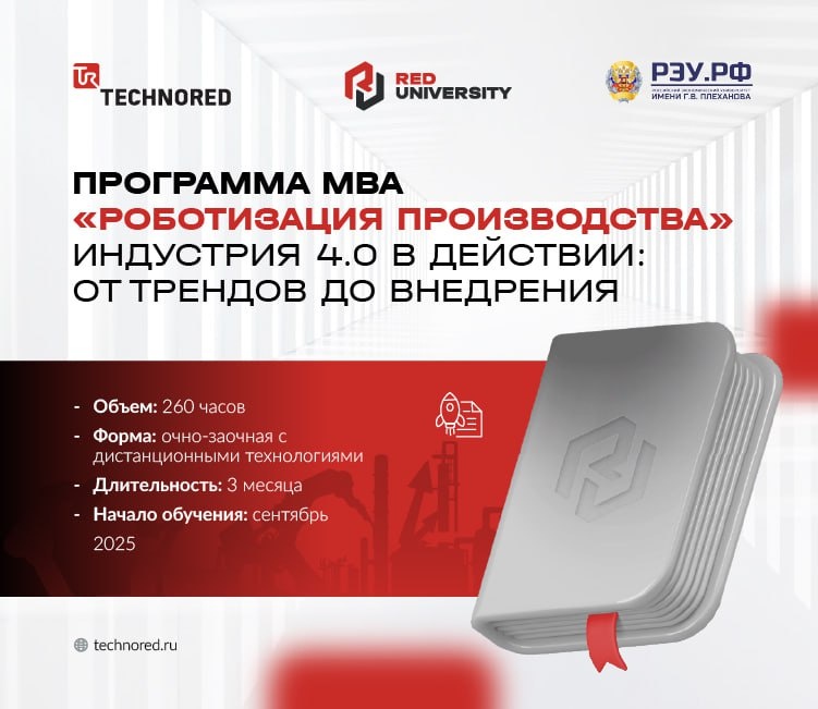 Рады сообщить, что уже в сентябре стартует совместная флагманская программа MBA от TECHNORED и ведущего экономического ВУЗа страны — РЭУ им. Г.В. Плеханова! 🔥