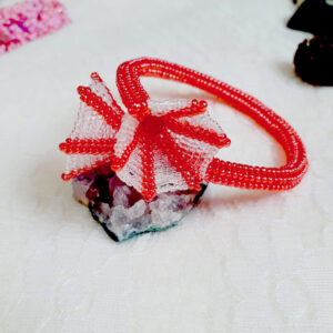 Продолжаем плести плетением ндбеле 6 рёбер и между ними добавляем 15 бисер. В первом ряду по одной бисерине