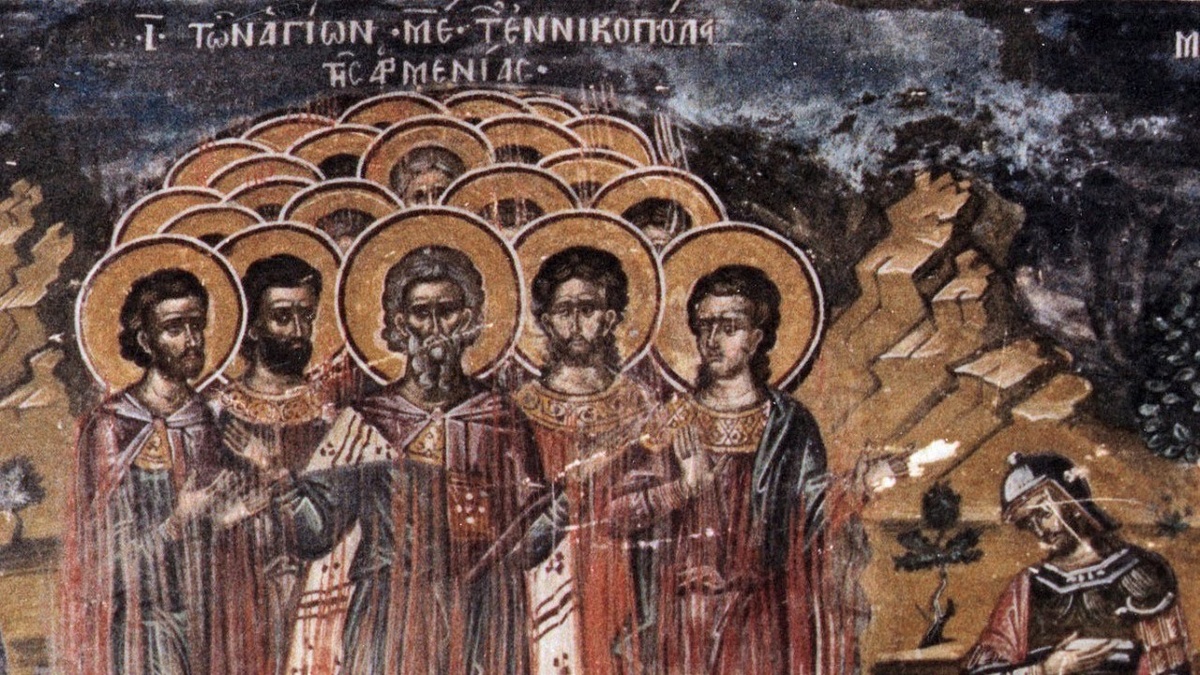 Сегодня в Церкви совершалась память сорока пяти мучеников Никопольских. Их пример очень важен для нас сегодня. Их подвиг поражает не только стойкостью перед пытками, но и одним очень важным обстоятельством: они пошли на это вместе. Добровольно явились к гонителям не поодиночке, а целая группа – более сорока человек. И когда их бросили в темницу, они не впали в отчаяние, а вместе... пели. Да, представьте: мрак каземата, впереди новые страшные пытки, а они поют псалмы Давида. Святой Леонтий специально ободрял остальных, укреплял их дух, напоминал о тех, кто до них мужественно страдал за Христа.
