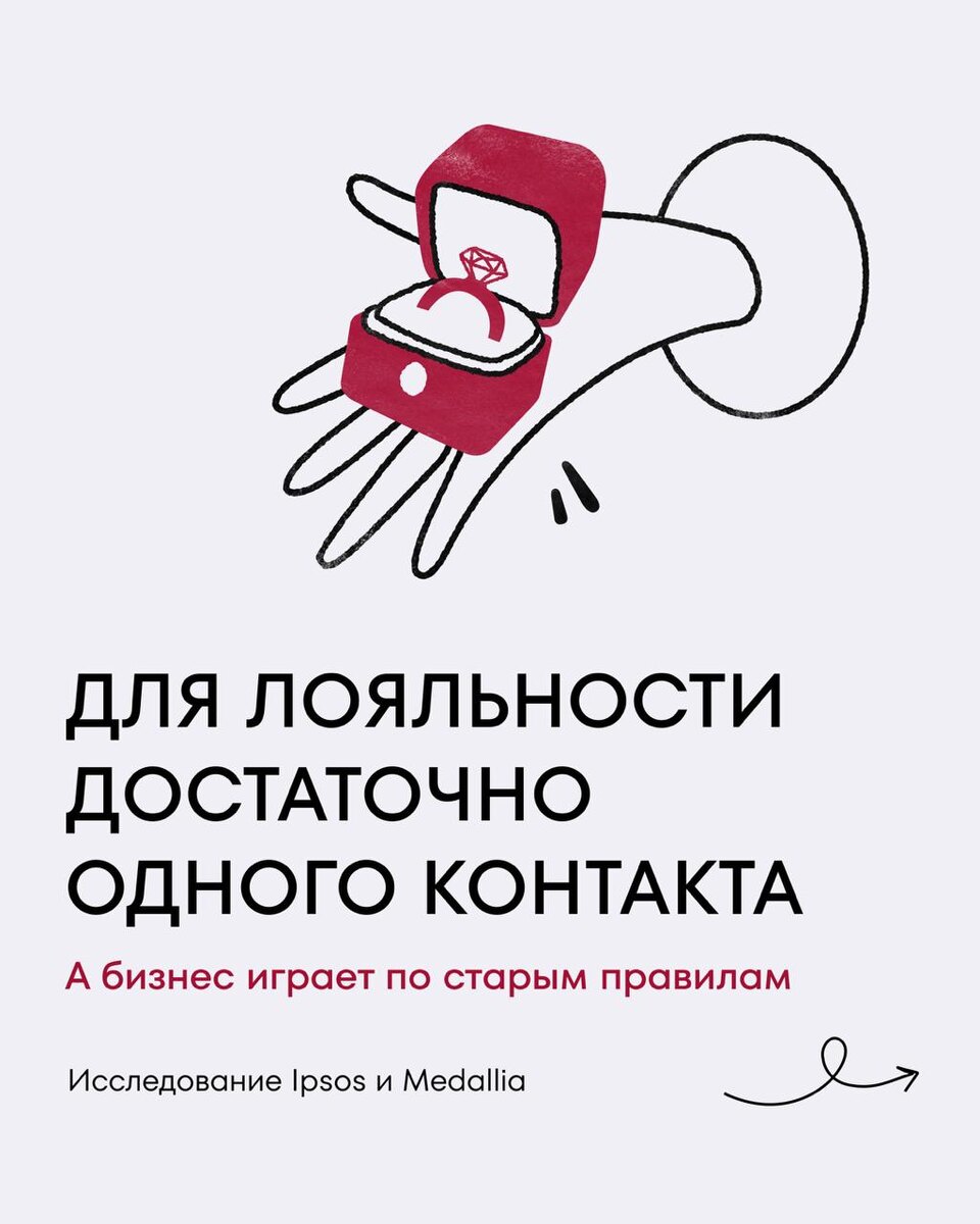 Один контакт — и клиент навсегда ваш? Теперь — да 🤔 Звучит неправдоподобно, но именно это показывает исследование Ipsos и Medallia: сегодня клиенту может быть достаточно одного положительного взаимодействия с брендом, чтобы остаться. А бизнес по-прежнему рассчитывает на 3—7 касаний. В карточках рассказываем, что влияет на лояльность сегодня. 🔛 Больше выводов из исследования читайте в материале.