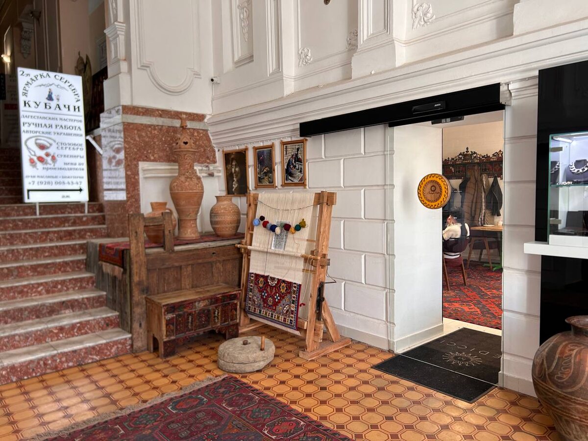 Что привезти в подарок с Кисловодска? В отпуске у нас всегда больше времени и можно расслабленно погулять по магазинам, не торопясь и наслаждаться видом красивых вещей, драгоценностей, а то, что понравилось, можно и купить на память или в подарок близким. Одним из таких мест является магазин серебряных изделий ручной работы «Кубачи», глаза разбегаются, хочется всё потрогать, померить. Находится этот магазин прямо в центре, в двух шагах от Нарзанной галереи, по адресу Курортный бульвар, 15, на 2 этаже, прямо над кафе «Солнце».