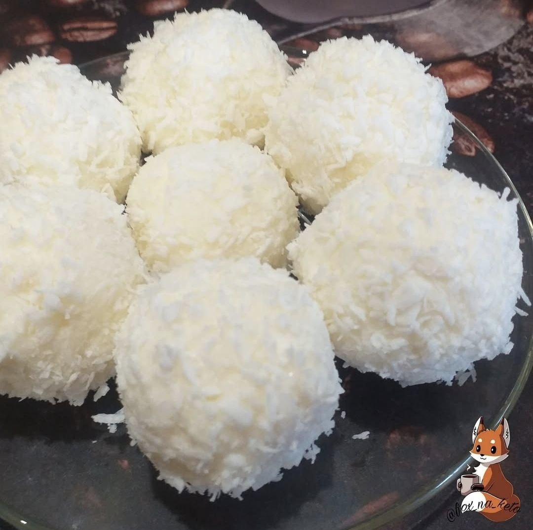 КЕТО РАФАЭЛЛО Ингредиенты: 📌 кокосовое масло нераф. 2 ст.л. 📌 маскарпоне 3 ст.л. 📌 эритрит 2-3 ч.л. (для меня 3 было сильно сладко) 📌 кокосовая стружка около 40 гр. 📌 миндаль жареный 7-8 шт Приготовление: Миндаль залить кипятком, оставить на 10 минут. Масло растопить в микроволновке, добавить эритрит и хорошо размешать. Добавить маскарпоне, перемешать до однородности. Кокосовую стружку сыпать по одной ст.л. до загустения массы. Хорошо перемешать и поставить в холодильник на 5-10 минут. А время, которое масса ждёт своего часа, потратить с пользой - "раздеть" миндаль 🤭. Приготовить полотенце и пищевую плёнку (или пакет). Достать массу из холодильника. Постелить полотенце, сверху плёнку, выложить 1 ч.л. массы, 1 орешек, завернуть плёнку и с помощью полотенца (чтобы масса не таяла быстро) скатать шарик, чтоб орешек оказался внутри. Обвалять в кокосовой стружке. Всё повторить, хранить в холодильнике 2-3 дня (если пролежат 🙈🙈🙈) или в морозилке (достать за 7-10 минут перед употребл