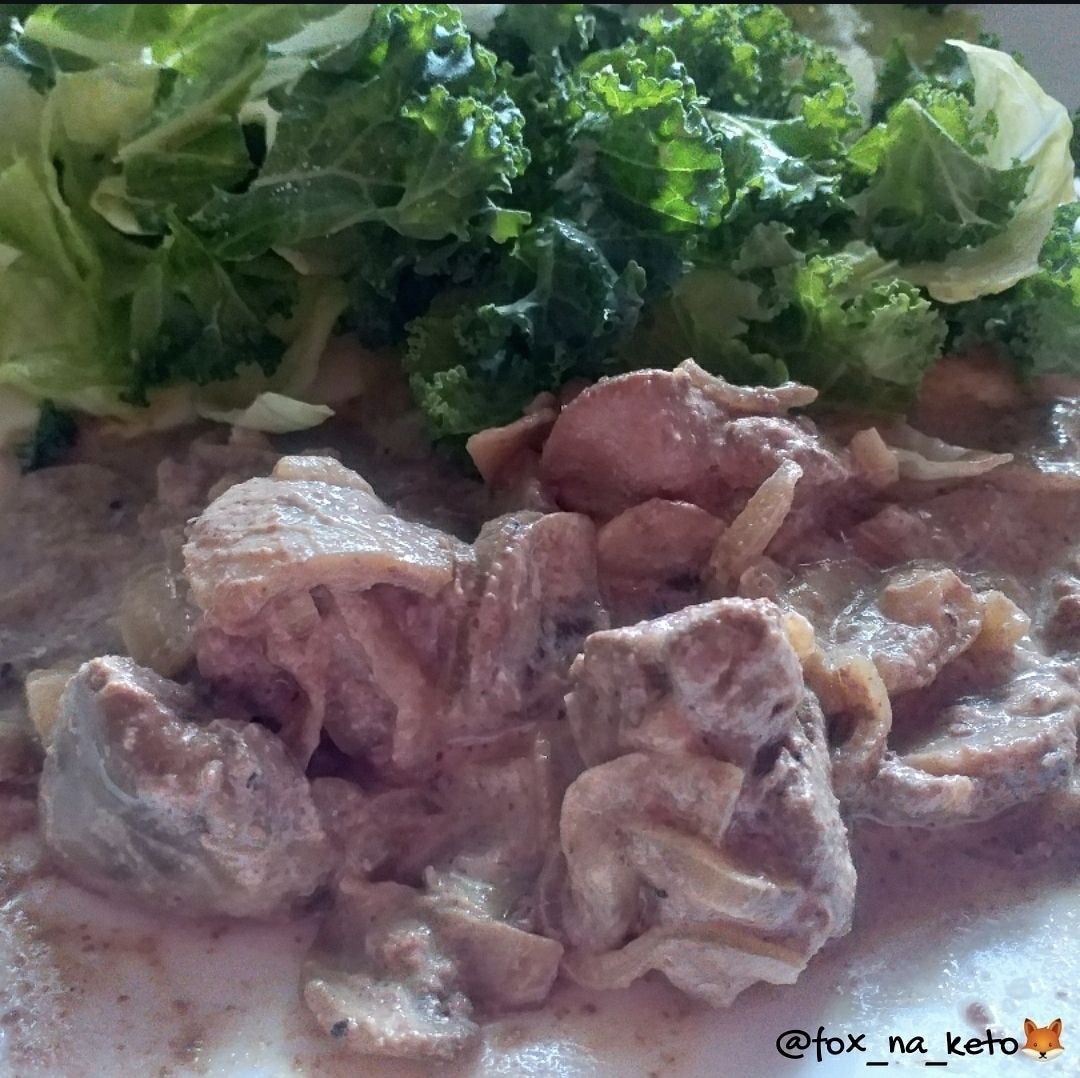 КУРИНАЯ ПЕЧЕНЬ С ГРИБАМИ Ингредиенты: 📌 печень куриная 500 гр 📌 лук репчатый 1 шт 📌 шампиньоны 4-6 шт 📌 жир для жарки 📌 сметана 4 ст.л. 📌 соль, перец по вкусу Приготовление: Лук нарезать полукольцами, обжарить на жиру до мягкости, добавить, нарезанные пластинками, грибы. Печень порезать на 3-4 кусочка, выложить в сковороду. Обжарить на среднем огне 2 минуты, перевернуть и еще обжарить 2 минуты. Добавить сметану, перемешать, накрыть крышкой и тушить 10 минут. ПРИЯТНОГО АППЕТИТА