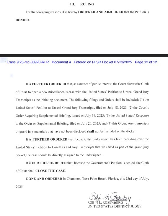 Florida judge DENIES Trump admin request to unseal Epstein docs