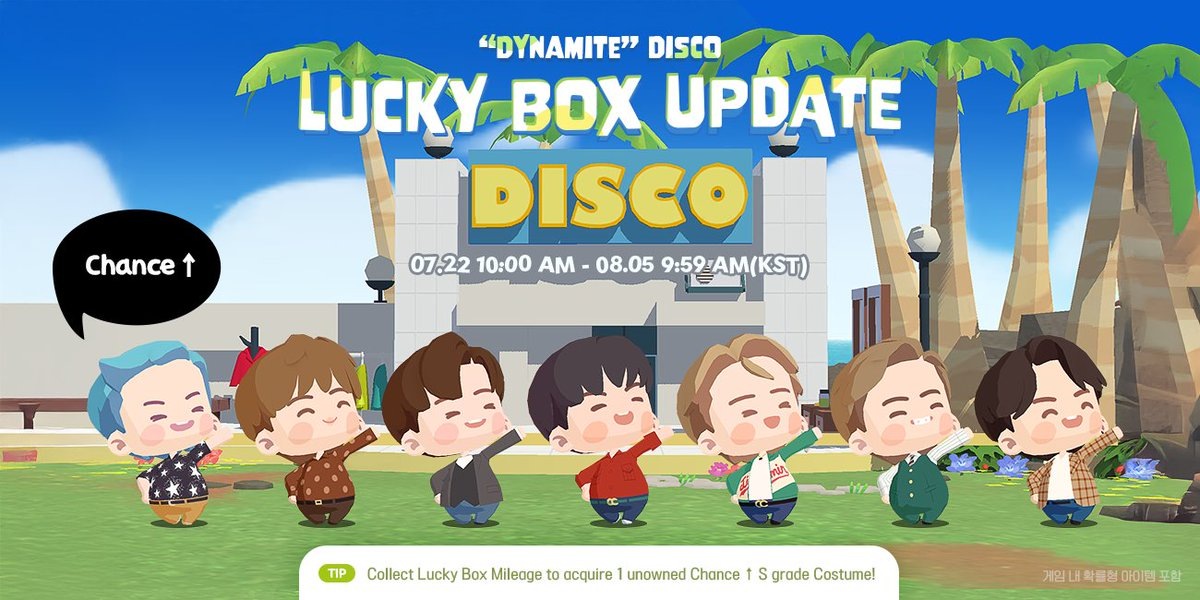 🍊 BTS Island In the Seom в X: 🍀 Обновление Lucky Box. Зажигай, как динамит! ✨ Получите наряды "Диско "Dynamite" с увеличенным шансом! 🕺 🏝 Ссылка на игру #InTheSeom @kumihobts