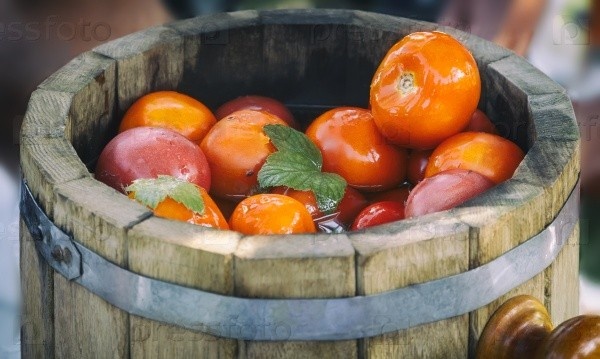 Соленые помидоры на этот раз у нас задуманы с горчицей и листьями смородины, а солить лучше в дубовой бочке, получается - за уши не оттянешь