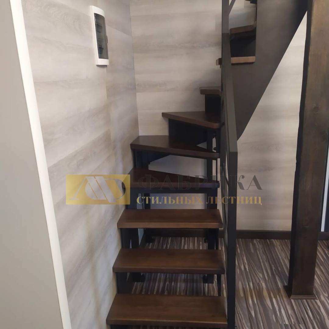 🪵 Внутренняя лестница открытого типа с забежными ступенями: эффектная геометрия и мощный характер Дуб кантри, ореховый цвет, воздушный силуэт и изысканная лазерная резка по металлу — именно так выглядит лестница, которую невозможно не заметить. Она не просто соединяет этажи — она собирает на себе все взгляды в интерьере. Что такое открытая лестница с забежными ступенями? Открытый тип — это когда между ступенями нет подступенков. Такая лестница: Забежные ступени — это элементы, которые «разворачивают» лестницу без площадки. Их выбирают, когда: Материалы: натуральный дуб и металл с характером Ступени выполнены из дуба кантри — сорта, который подчёркивает природную фактуру древесины, сучки, переходы цвета. В этом проекте он окрашен в классический орех — тёплый, насыщенный, благородный оттенок, который придаёт всей конструкции глубину. Ограждение, которое говорит за себя Здесь мы использовали металлический лист с лазерной резкой. Это не просто защита, а самостоятельный арт-объект: