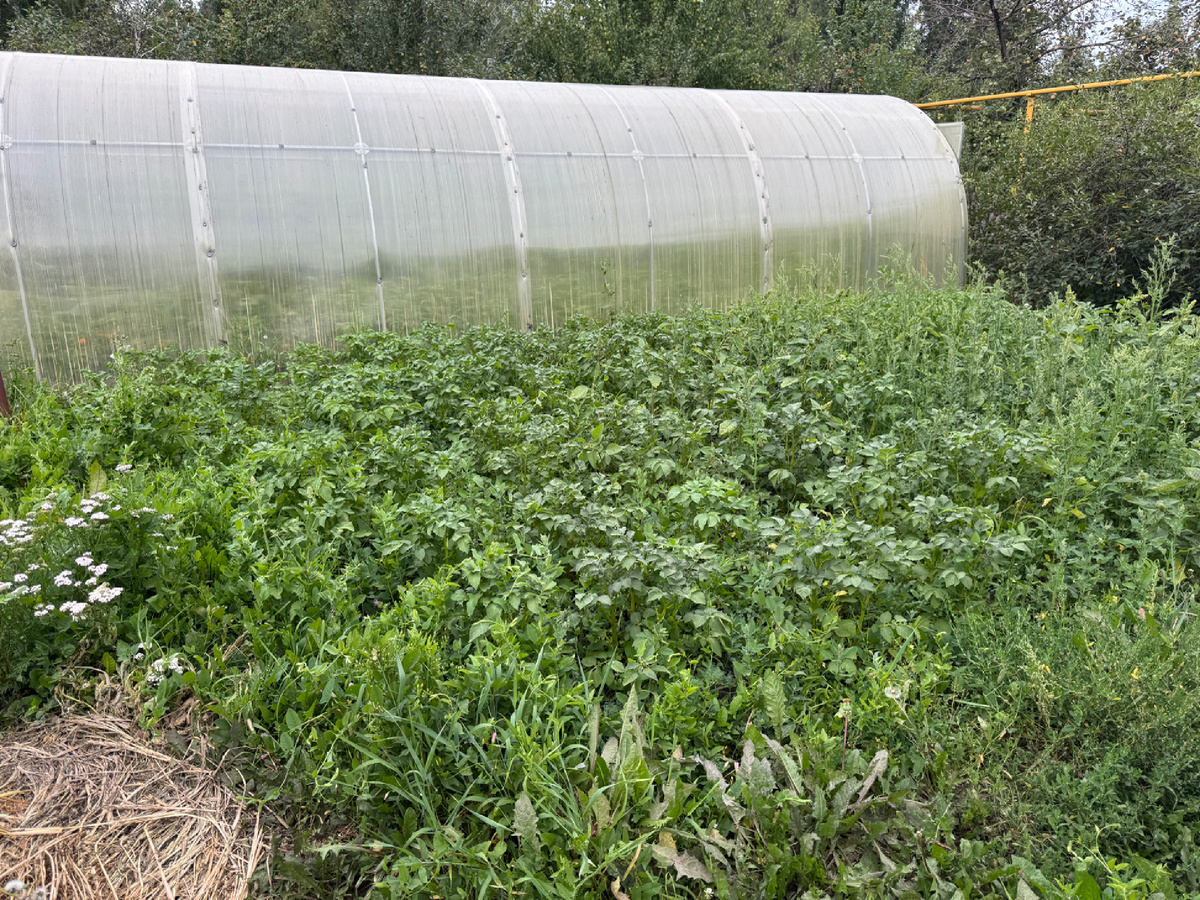 В общем, пошла я последний участок картошки полоть. Руками, так как с тяпкой туда не залезешь. Два то участка в порядок уже привела, прополола, окучила, подкормила и мы даже их хорошо пролили. А этот сиротинушка стоит... Его никто не трогал, но и посажена эта картошка на неделю позже, естественно поменьше размером и цвет еще не набирает, но заросла...