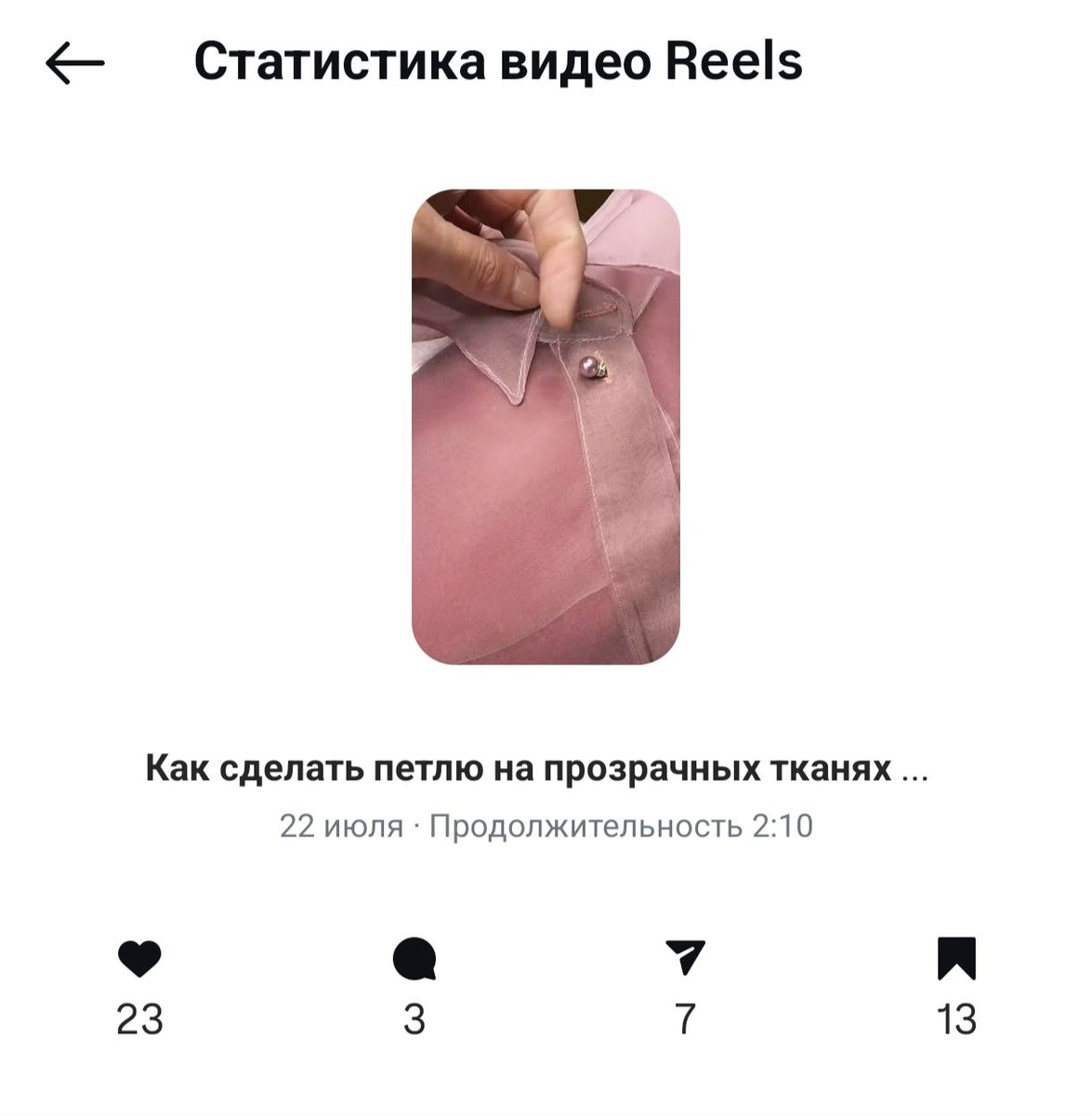 Моя статистика в другой соц сети на вчерашний МК "Как сделать петлю на прозрачных тканях" меня радует 🔥 Благодарна всем за интерес к моему творчеству ❤️ Дальше - будет ещё интереснее, оставайтесь со мной 🥰