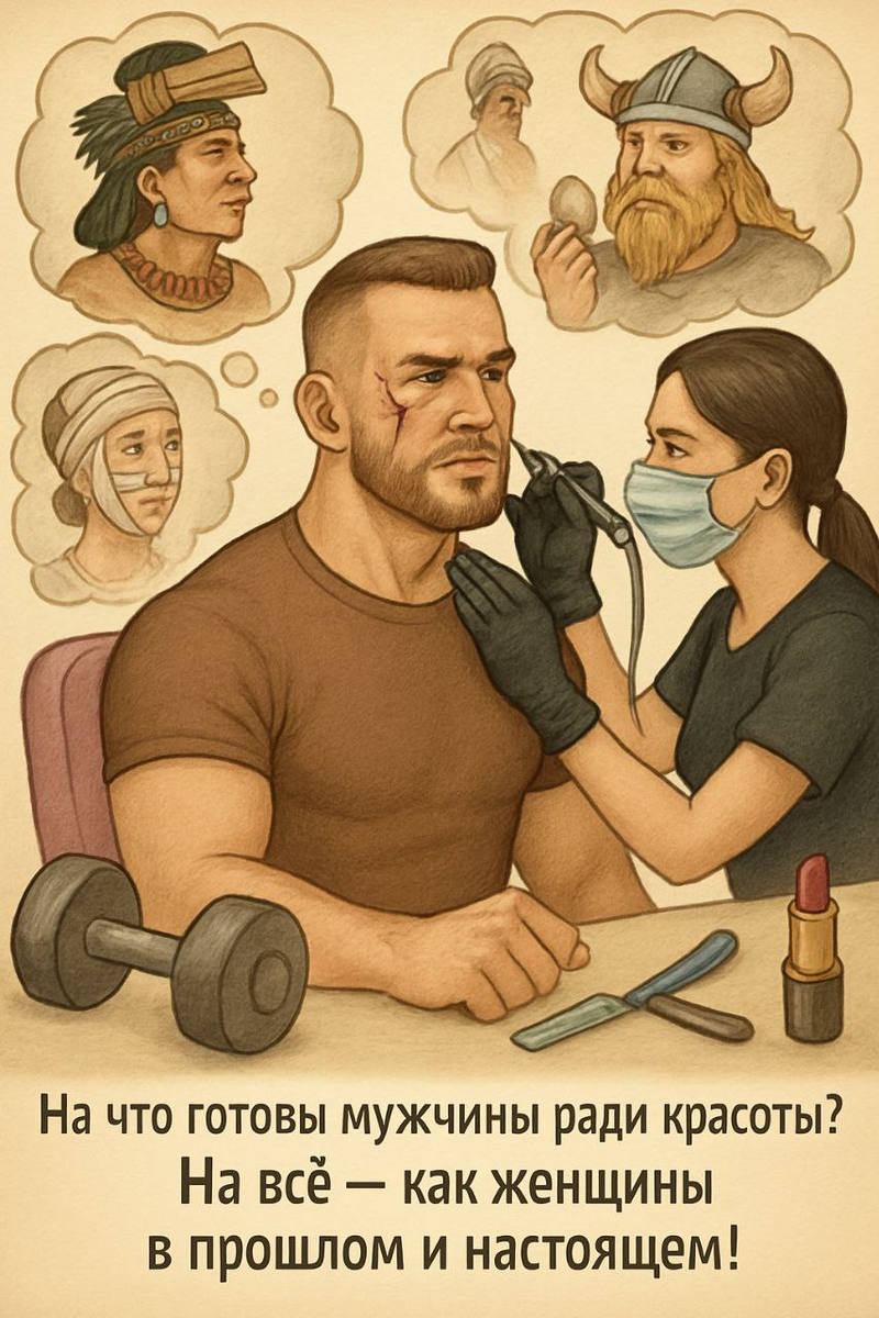 На что готовы женщины ради красоты? Абсолютно на всё! В начале 20-го века женщины во Франции буквально сдирали кожу с лица и заливали раны прозрачным лаком. Представляете, каково было мужикам, которых навещали вечерами такие феи красоты? Мазались свинцом и ртутью — чтобы отбелить кожу. Помимо нездоровой белизны кожных покровов они получали: хроническое отравление, судороги, выпадение зубов и раннюю смерть. Делали депиляцию рентгеновскими лучами — удаляли волосы с помощью многочасового рентгена, что приводило к язвам, атрофии кожи и раку. Пили радиоактивный радий, а глистов «для похудения» прекрасная половина человечества заводит до сих пор. Если вы думаете, что мужчины отличались большей рациональностью, то глубоко заблуждаетесь! Мальчикам майя с детства сплющивали черепа досками ради «большой головы», сверлили зубы и вставляли туда драгоценные камни или металлические вставки. Это делалось, чтобы показать свое богатство и статус, ну и украсить себя, конечно. Кстати, подобным занимают