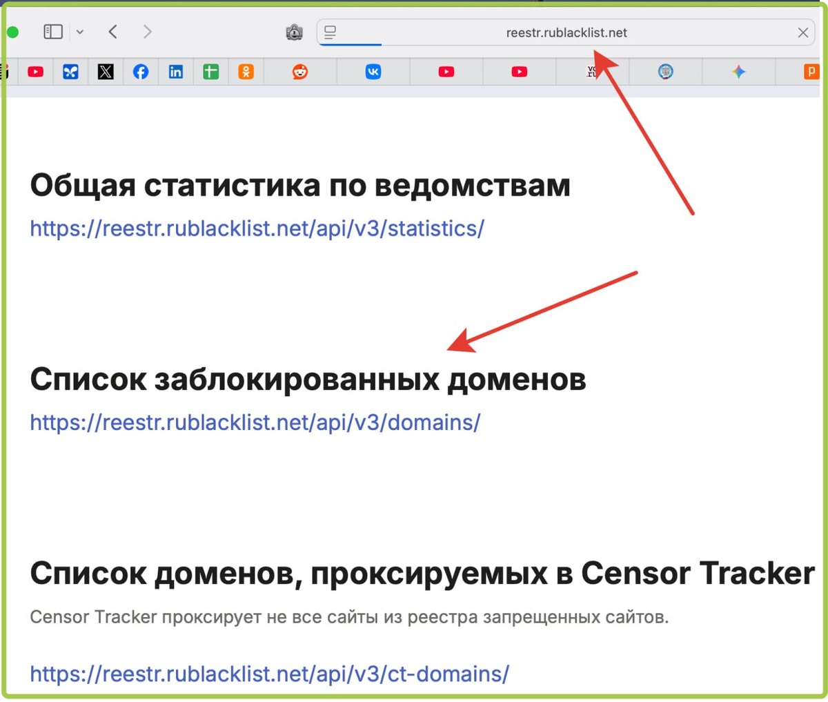 Реестр заблокированных доменов от РКН, можно по API забирать актуальный список для вашего проекта (чтобы случайно не зацепить эти домены). Всего около 1 млн. запрещенных (заблокированных) сайтов (если это корректные цифры). p.s. странно, но сам РКН не дает публичный доступ к реестру, поэтому приходится искать альтернативные источники... И этот источник является иностранным агентом по закону РФ (я просто предупреждаю, так по закону надо). Русский ИТ бизнес