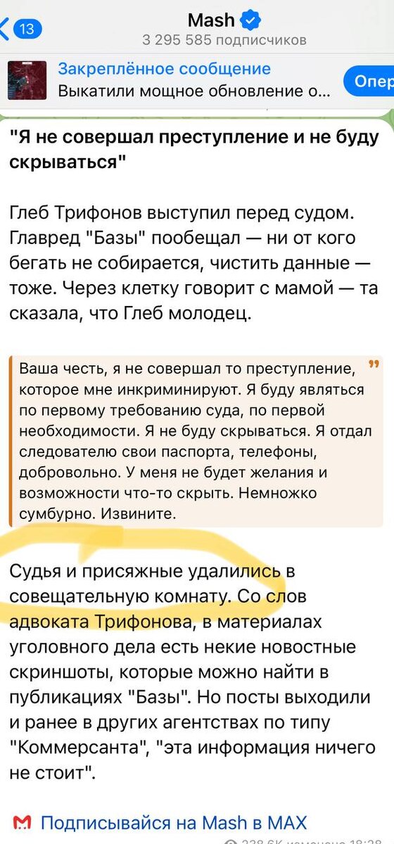 Журналистика, которую мы заслужили. На 3 миллиона человек. При самых плохих раскладах, никак не могу представить, кто же удалился в совещалку вместе с судьёй?🤔 UPD 20:54. Потёрли. Ну ок). Консультации онлайн/офлайн | Чат | Дзен | ВК | Адвокат Кирилл Мариненко | АБ «Дмитрий Фомин и партнёры»