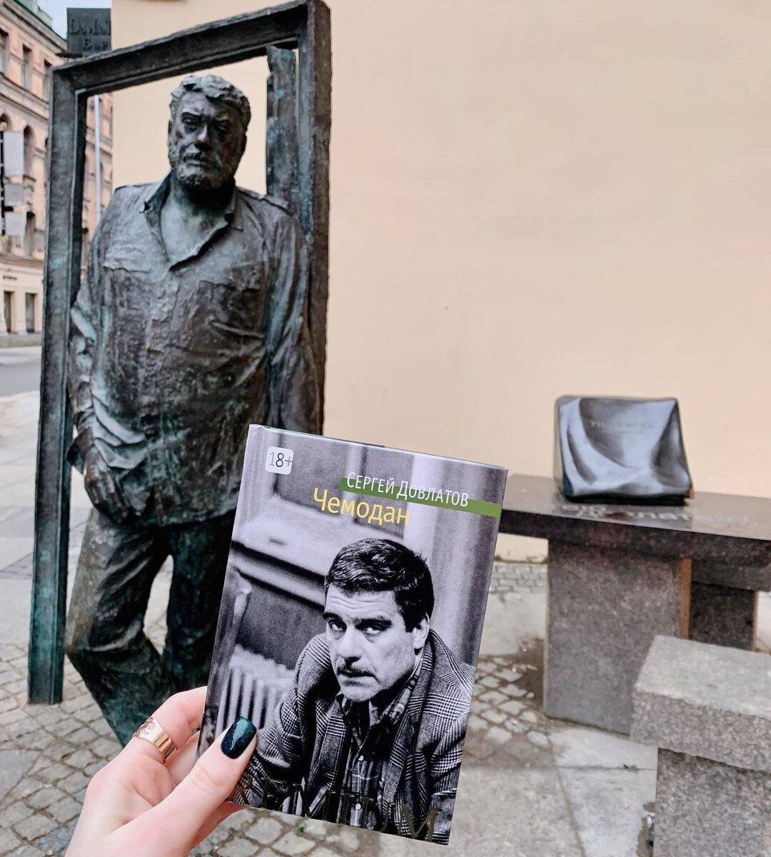 Теперь я знаю к кому обратиться в случае тоски по прошлому веку и случайно возникшем состоянии апатии к окружающему миру. Довлатов. Сборник «Чемодан» стал для меня хорошей разрядкой среди однообразных будней: учеба, работа, работа, учеба, убота, рачеба… стакан пива. Каждый рассказ из сборника посвящен отдельной вещи из чемодана Сергея Донатовича, с которым он уехал в эмиграцию. Среди «складок этого убогого тряпья» - носков, ремня, шапки, перчаток – таятся воспоминания и томики Маркса и Бродского. Это не просто предметы гардероба писателя, это целые истории, предшествующие появлению каждого из них. Восемь рассказов, пропитанных ленинградским духом и водкой, стали для меня пилюлей от калужской серости. Это, безусловно, питерская серость! Но она мне больше по душе. Накануне прочтения книги я прогулялась по улице Рубинштейна, где жил писатель или, как он сам себя называет, рассказчик. Я час сидела у бара «Компромисс» и смотрела на памятник Довлатову. Что-то в нем было. Не ундервуд, н
