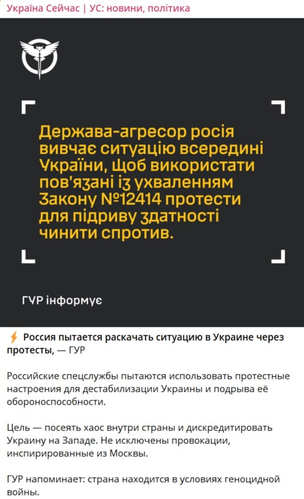 Вполне ожидаемо, что Киев обвинил Россию в использовании протестов против изменений законодательства Зеленским. Людям намекнули, что протестующих будут привлекать за шпионаж.