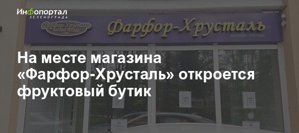 На месте магазина «Фарфор-Хрусталь» на площади Юности откроется фруктовый бутик. Один магазин этой сети уже работает в Андреевке и специализируется на экзотических фруктах. Подробности в публикации Инфопортала. подписаться / обсудить в чате