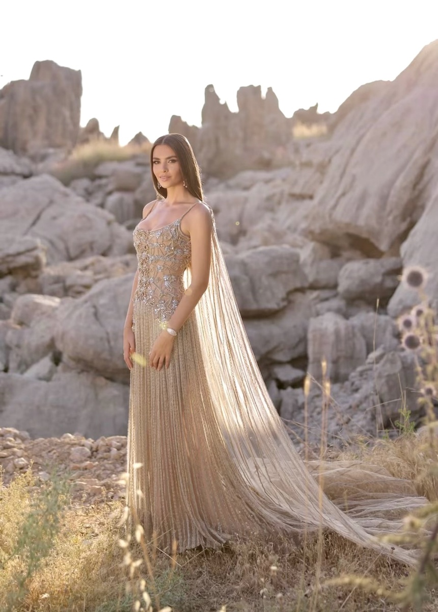 Представьте, что вы выходите замуж. Но не просто за любимого человека, а за сына одного из самых влиятельных кутюрье планеты - Эли Сааба. Для Зейн Кутами, девушки из Абу-Даби, этот момент стал не просто личным торжеством. Это была модная симфония в трёх частях, каждая из которых произведение haute couture, написанное руками самого мэтра. За три дня свадебного уикенда, прошедшего в ливанских горах, Зейн предстала в трёх образах, каждый из которых мог бы закрывать показ на Неделе высокой моды. Это была не просто свадьба. Это была сказка, написанная в шелке, вышивке и свете. I акт: Тепло накануне - вечер pre-wedding, где рассвет встретился с шифоном Вечер 17 июля. Ливанские горы окрашиваются в пастельные тона заходящего солнца. На фоне природного величия появляется Зейн в песочно-розовом платье, созданном так, будто его соткали из лучей зари. Полупрозрачный плащ, вышитый изящными арабесками, свободно струится по фигуре. Легкий шифон не обязывает, а обволакивает. Каждое движение Зейн как