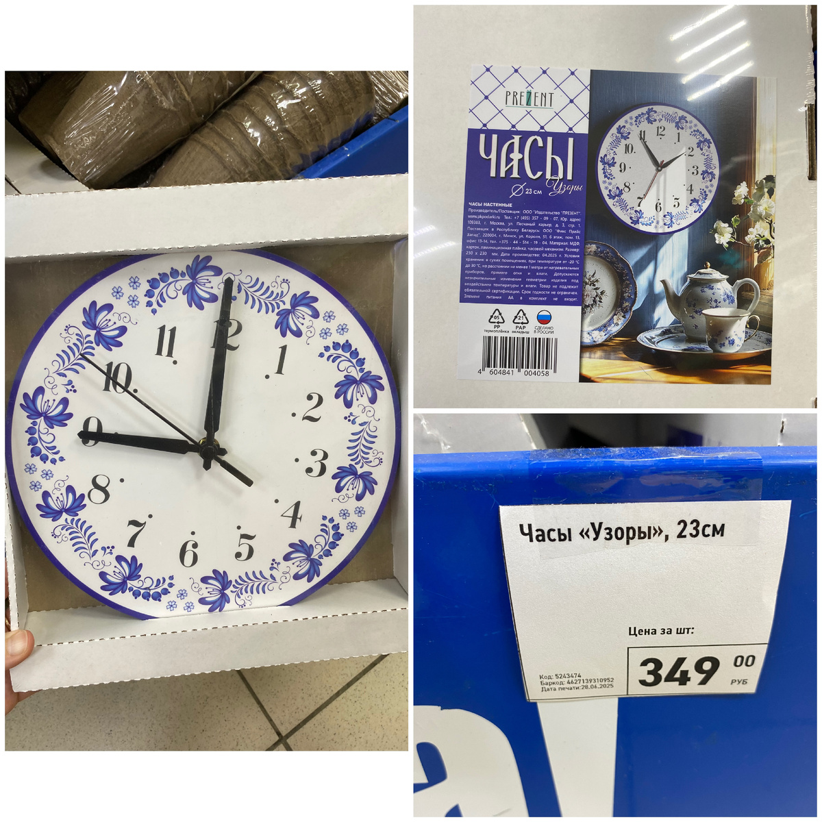 Всем привет. Меня зовут Наталья. Я очень рада видеть вас на своём канале. Сегодня мы с вами прогуляемся по магазину Фикс Прайс, который находится по адресу: город Йошкар-Ола, улица Йывана Кырли, дом 44. В этот раз я приготовила для вас подборку сине-белых новинок. Так что устраивайтесь поудобнее. Желаю всем приятного времяпровождения. Часы "Узоры" стоимостью 349 рублей. Их диаметр 23 см. Работают часы от одной пальчиковой батарейки. Батарейка в комплект не входит. Состав: МДФ, картон, ламинационная плёнка, часовой механизм. Страна изготовления Россия. Настенный декор "Иден" стоимостью 199 рублей. Состав: МДФ, канвас, сталь. Страна изготовления Китай. В магазине 3 варианта. Декоративная фигурка "Амур" стоимостью 149 рублей. Состав: полирезин. Страна изготовления Китай Подсвечник "Фольк" стоимостью 199 рублей. Его высота 10 см. Состав: керамика. Страна изготовления Китай. Подсвечник "Фольк" стоимостью 199 рублей. Его высота 18 см. Состав: керамика. Страна изготовления Китай. Ваза "Фольк"