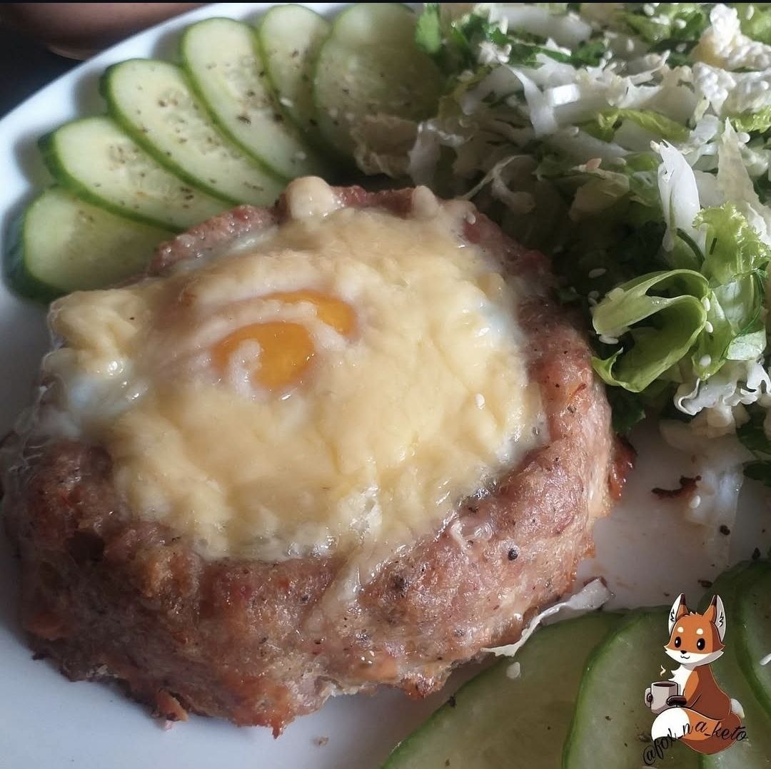 КОТЛЕТКИ "ГНЕЗДО КУКУШКИ" 😉 Ингредиенты : 📌 жирный фарш примерно 1 кг 📌 яйца 1 в фарш + по количеству гнёзд 📌 сыр 50-60 гр 📌 соль, специи по вкусу Приготовление: У меня фарш был готовый (бедро и грудка индейки с кожей, сало, лук, чеснок, соль, специи) около 1 кг. В фарш добавляем яйцо, хорошо вымешиваем, отбивает. На силиконовый коврик выкладываем шарик фарша, делаем углубление. Ставим в разогретую до 200 °С духовку на 30-35 минут. Достаём из духовки. Жидкостью, которая получилась в углубление, поливаем бортики котлет, освобождая место для яйца. Вбиваем в каждое гнёздышко яйцо (лучше брать маленькие, С2) и посыпаем тёртым сыром. Отправляем в духовку еще минут на 7-10 ПРИЯТНОГО АППЕТИТА