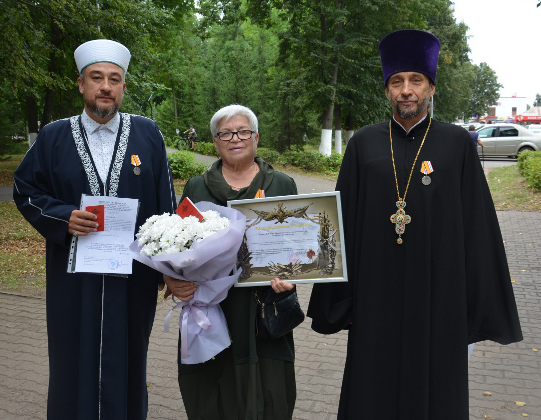 Такой же почетной медалью награждены имам-мухтасиб мечети имени хаджи Хусейн-бека хаджи Зуфара Субхангулов и настоятель храма Успения Пресвятой Богородицы поселка Чишмы протоиерей Владимир Ждан