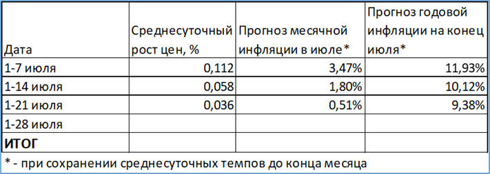 С 1 по 21 июля среднесуточный рост цен составил 0,0,036%. Эффект от роста цен на услуги ЖКХ постепенно затухает, как мы и ожидали. Если такой рост продлится до конца месяца, то инфляция по итогам июля составит 9,38% годовых. Это уже ниже, чем по итогам июня (9,40%). На 29-й неделе цены не выросли, а снизились на 0,05%. На графике красная линия ниже оранжевой (недельная инфляция ниже прошлогодней), это соответствует снижению годового показателя инфляции. === Телеграм: @m2econ Навигатор: https://dzen.ru/a/ZPyf34uBfzz9x0pr