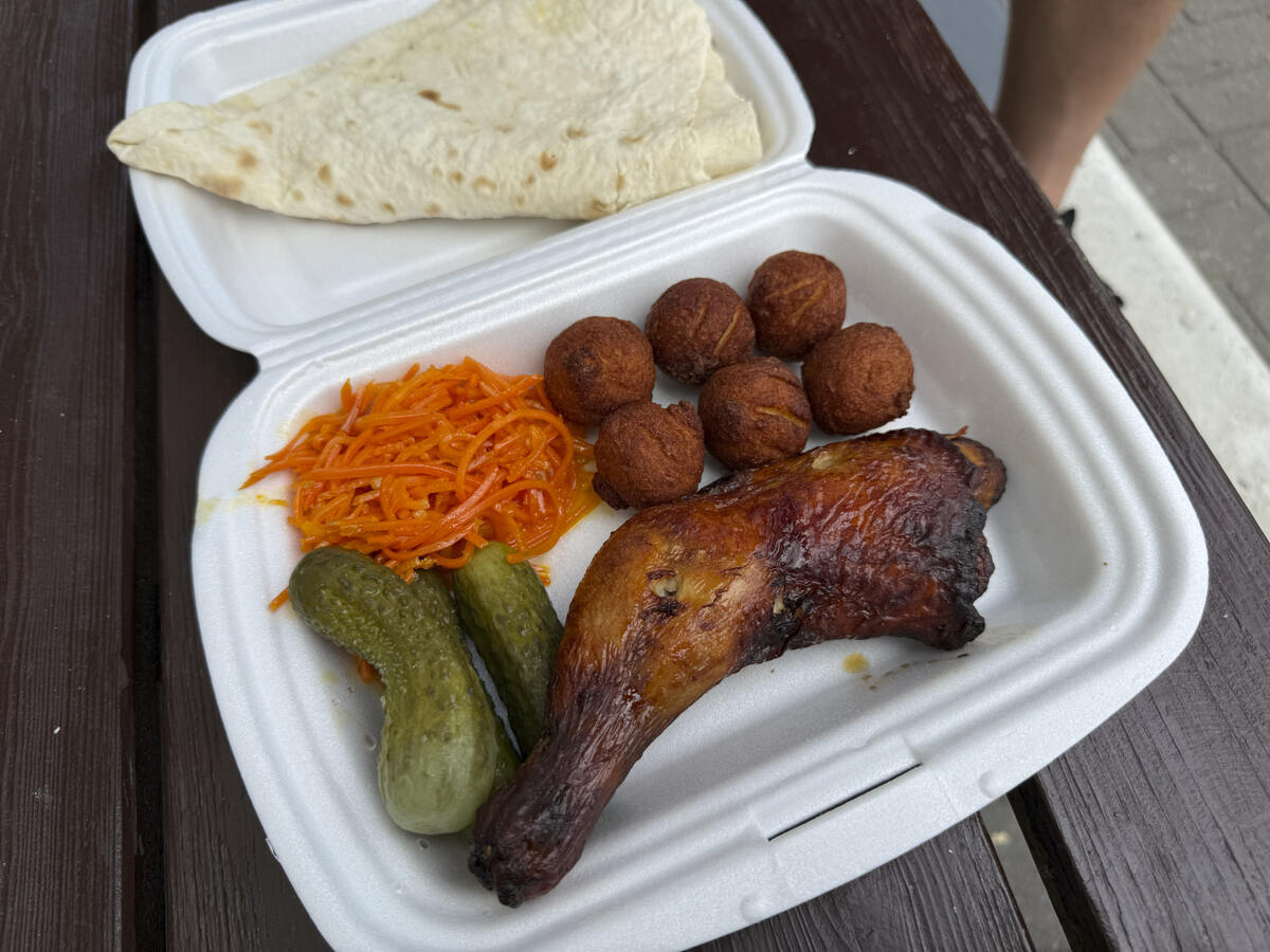 Не перестану в сотый раз напоминать, что не работают у нас монопродукты, кроме шаурмы! Смаженки, хот-доги, барановичские лодочки в Минске, чебуреки, трдло и, собственно, куры гриль - это утопия, оставьте жареных кур кулинариям. Только все забыли про «Два крыла», которые успели похайпиться пару недель, как вот очередное «Куранё» заработало там, где зародилась пицца майонезная лисицца - окошко у СТО на Горецкого, 95. За самой топовой курой гриль по ГОСТУ все ездят в «Дзержинку» на Змитрока Бядули, 8, но я об этом вам не говорил, забудьте. Из окна «Куранё» довольно быстро отпускают ланч-боксы типа обед от 16 до 19р, чёт рядами Жданов повеяло. Внутри пенопластовой коробки чикен окорочок гриль, фритюрные картофельные шарики, маринованный огурец, морковка по-корейски, лаваш плюс кетчуп. Вспомнилась свежая точка с белорусской шаурмой из печи «Паулинка». Из офисного набора интересен лишь мясистый куриный окорочок, у которого два колото-режущих после гриля. Тонкая, хрустящая корочка - окей, цве