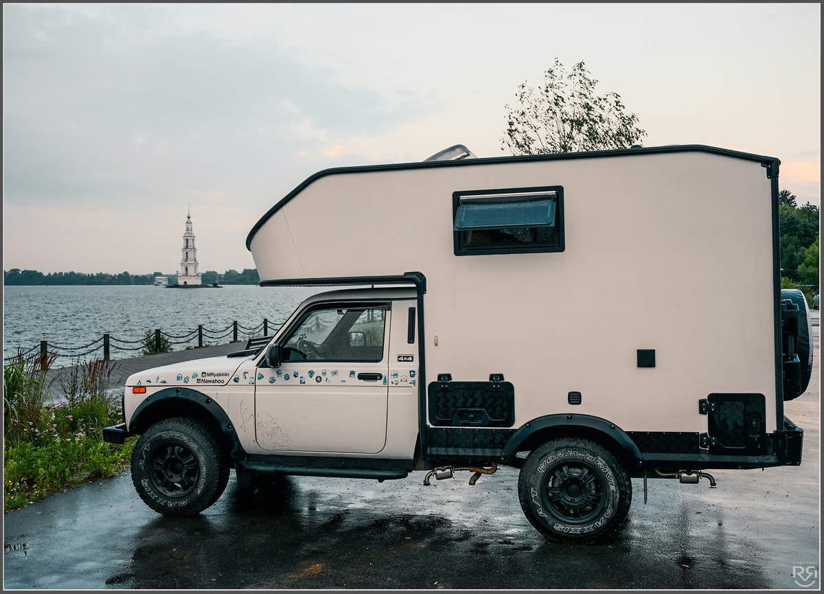 Ах, какой был в Калязине ливень! Думал, что автодом смоет в Волгу вместе со всеми легковушками, приезжавшими на набережную проводить закат и просто потусить. Однако автодом тем и хорош, что можно встать в любую погоду в красивом месте, достать из холодильника бутылочку винца и получать удовольствие от жизни. И сразу продавать кемпер расхотелось...