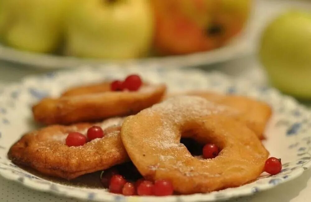 📝 Ингредиенты (на 2–3 порции): Яблоки — 2–3 шт. (лучше кисло-сладкие, твёрдые) Яйцо — 1 шт. Мука — 3–4 ст. л. Молоко или вода — 3–4 ст. л. Сахар — 1–2 ст. л. (в кляр + по желанию сверху) Соль — щепотка Ванилин или корица — по вкусу Масло растительное — для жарки 🍳 Приготовление: Подготовь яблоки: