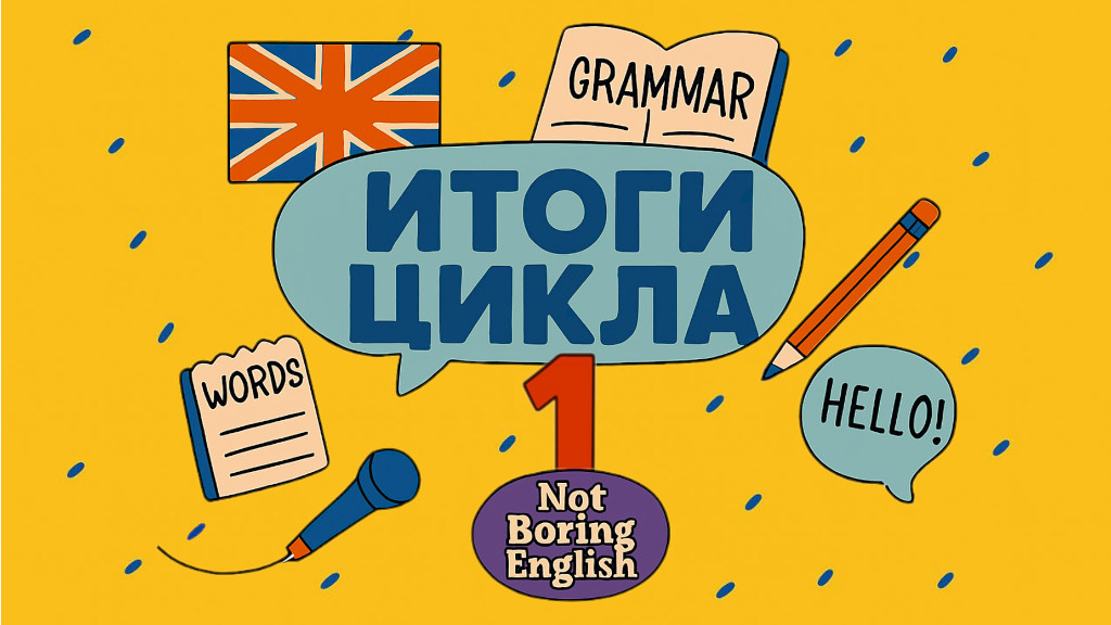 Вы только начали своё путешествие в мир английского языка — и это здорово! За этот цикл вы познакомились с множеством новых слов, фраз и историй, которые сделают ваш английский живым и понятным. В этой статье мы вместе вспомним всё самое важное, что вы уже узнали, и расскажем, что будет дальше. 👉 Если хочешь понять, что это за циклы такие и как они устроены, то загляни в эту статью "Как устроен Not Boring English?". 1. Английские части речи - от существительных до союзов 👉 Если вы только начинаете или что-то забыли, рекомендуем вернуться к статье "Английская грамматика с нуля: Урок 1 - Части речи (Parts of Speech)". 2. 10 базовых слов про животных Вы узнали названия животных, которые часто встречаются в английском языке, например: dog (собака), cat (кот), bear (медведь) и другие: animal, bee, bird, chicken, cow, crocodile, donkey. Эти слова легко запомнить благодаря простым ассоциациям и примерам. 👉 Для повторения загляните в "10 базовых слов о животных на английском (Pre-A1)". 3.