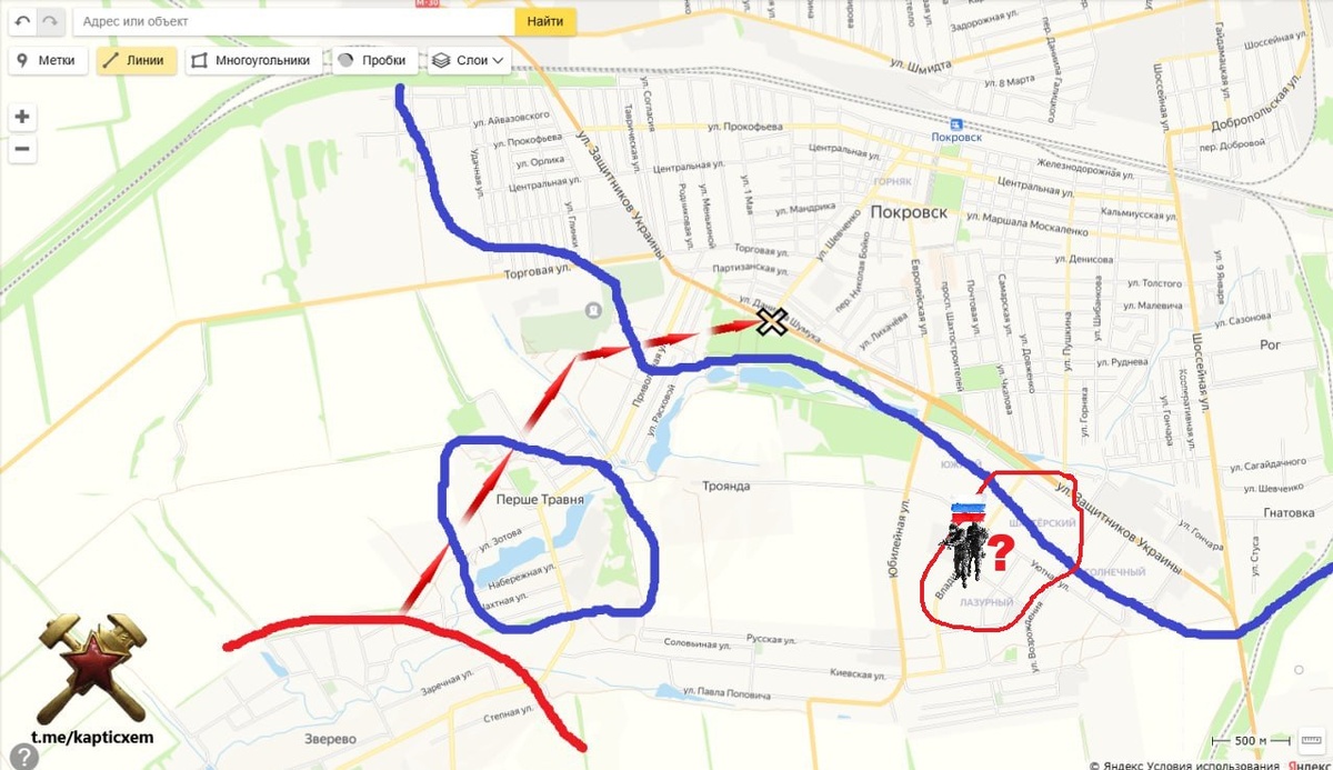 В ответ на пост По сети расходится видео зачистки дома. Утверждают, что это микрорайон Покровска - Шахтерский или Лазурный. Отметил на карте. Поставил большой знак вопроса. схемы и карты