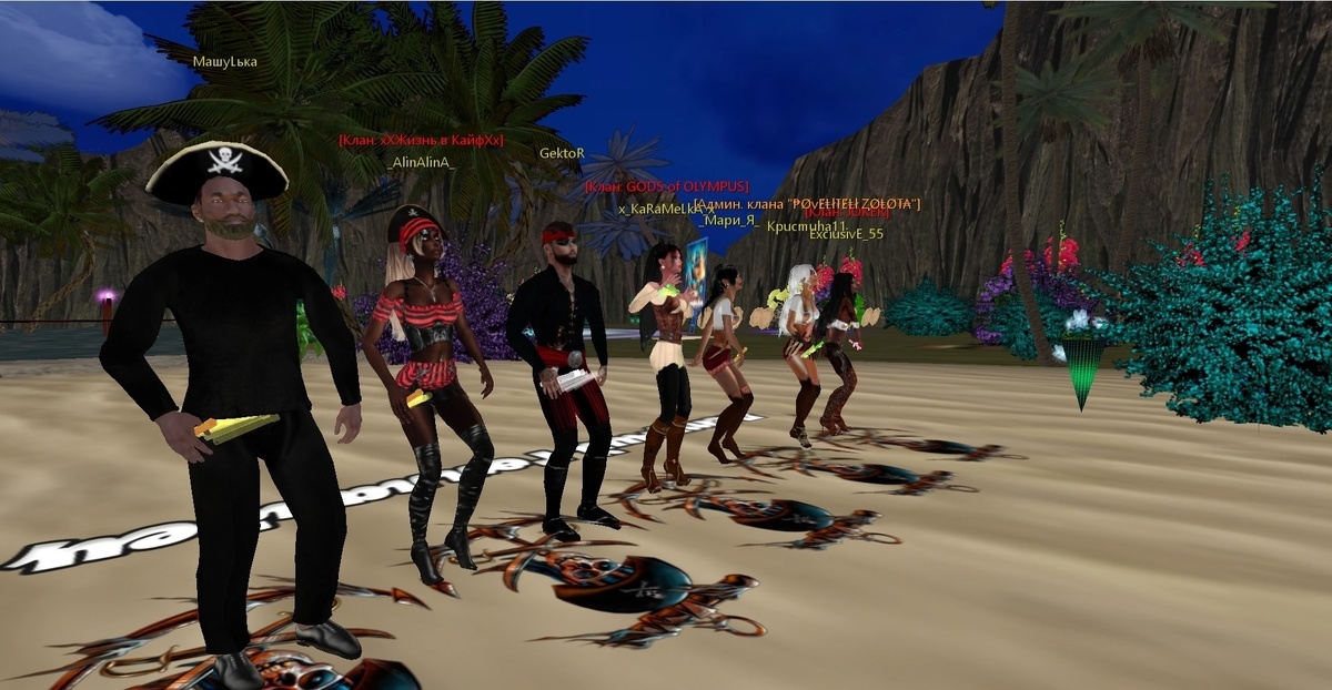 Пусть волны бушуют и мачты рыдают, Пусть ветер пророчит нам горе — Пираты стаканы полней наполняют И пьют за бескрайнее море. Опасность за волю — достойная плата. Со смертью отважные спорят. До дна! Ведь на дно нам пока рановато! Мы любим бескрайнее море! Наши любимые организаторы посвятили серию вечеринок пиратам. Дресс-кодом, естественно, были костюмы пиратов. ⚔ Свистать всех наверх! Организатор __DILER__ собрал гостей в локации Vanilla Sky. Здесь была подготовлена викторина о забористом пиратском сленге, с чем ребята с лёгкостью справились. Далее девушки устроили пиратские танцы, на сцене было очень горячо - девушки радовали глаз своими костюмами и выступлениями. Игрокам также было дано задание выбрать себе пиратскую кличку. Вот какие клички были у наших очаровательных пираток: Mis_ЧeRtEnOk: БЕЛАЯ АКУЛА, MEЧTA: Злобная РОМом пропитанная Мисс Мечта, Гроза портовых кабаков и одиноких мужчин; Бeлая_Ведьма: Безжалостная Гуля Рид, ЛанаГранд: Королева Карибов _Я, _AlinAlinA_: Ленивая К