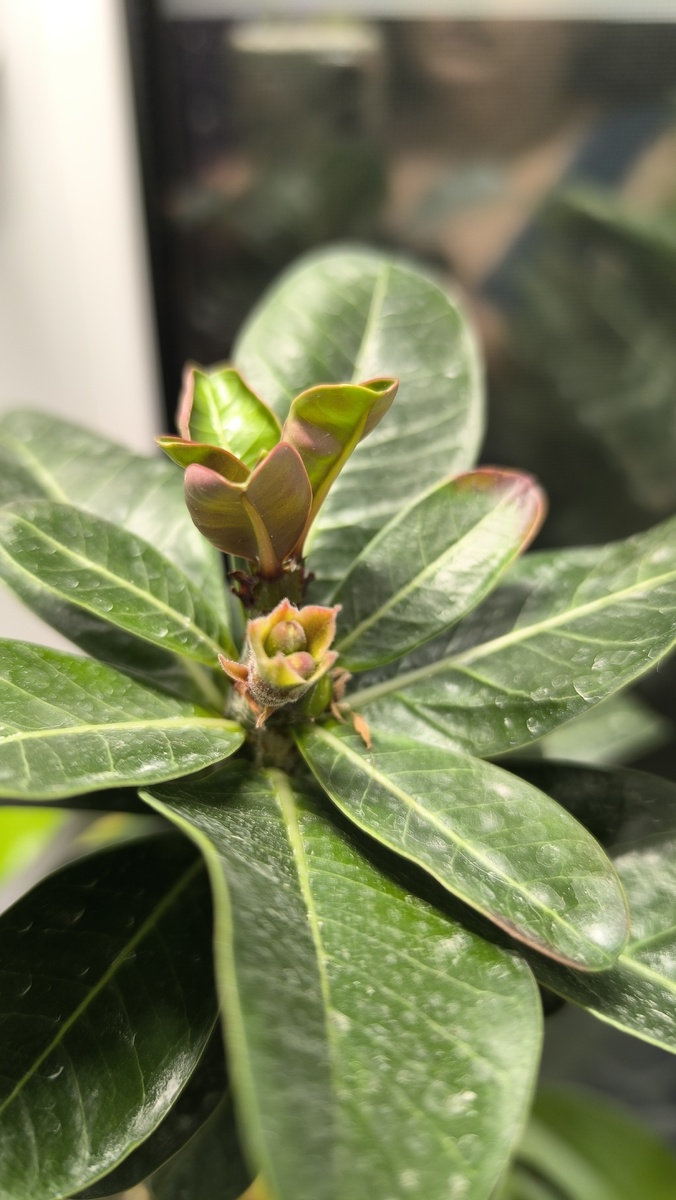 Ни что так не украшает растение как красивые и толстые рога. И в данном случае это не признак того что ему кто-то где-то "рога наставил". В наших краях и на подоконниках самопроизвольное появление рожек на растении случается но крайне редко увы. В общем так начинается все с вот таких пушистых пупырок... Хотя на самом деле примерно месяцем раньше до этого фото, скрепя сердце и отгоняя жабу я порвала несколько цветов на разных адениумах. Зачем такое святотатство ? Да потому что пчёлка 50+ размера по другому опылить цветы не может. Пыльцу добыла и в разные цветы попыталась опылить. И только на одном получилось, спустя месяц от жужжания я нашла зачатки будущих рогов. И потом регулярно фотографировала эти рога. Рога довольно шустро нарастают и очень меняются. Буквально за два месяца из зачатков они превращаются в шикарные толстенькие полноценные рожки. У семенных коробочек адениумов сходство с рогами не только визуальное но еще и поверхность нежная как мягкая замша на ощупь. После того ка