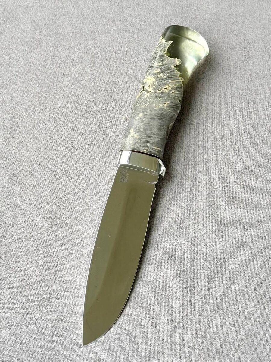 В наличии невероятной красоты ШАМАН 😍 Вы только посмотрите на эту рукоять 🗡️ Сквозь полимер можно разглядеть всю текстуру внутри рукояти 🤩 Сталь 95х18 ⚙ТТХ: Длина изделия: 254мм Длина клинка: 132мм Ширина клинка: 32мм Толщина обуха: 4,1 Кому оформить?