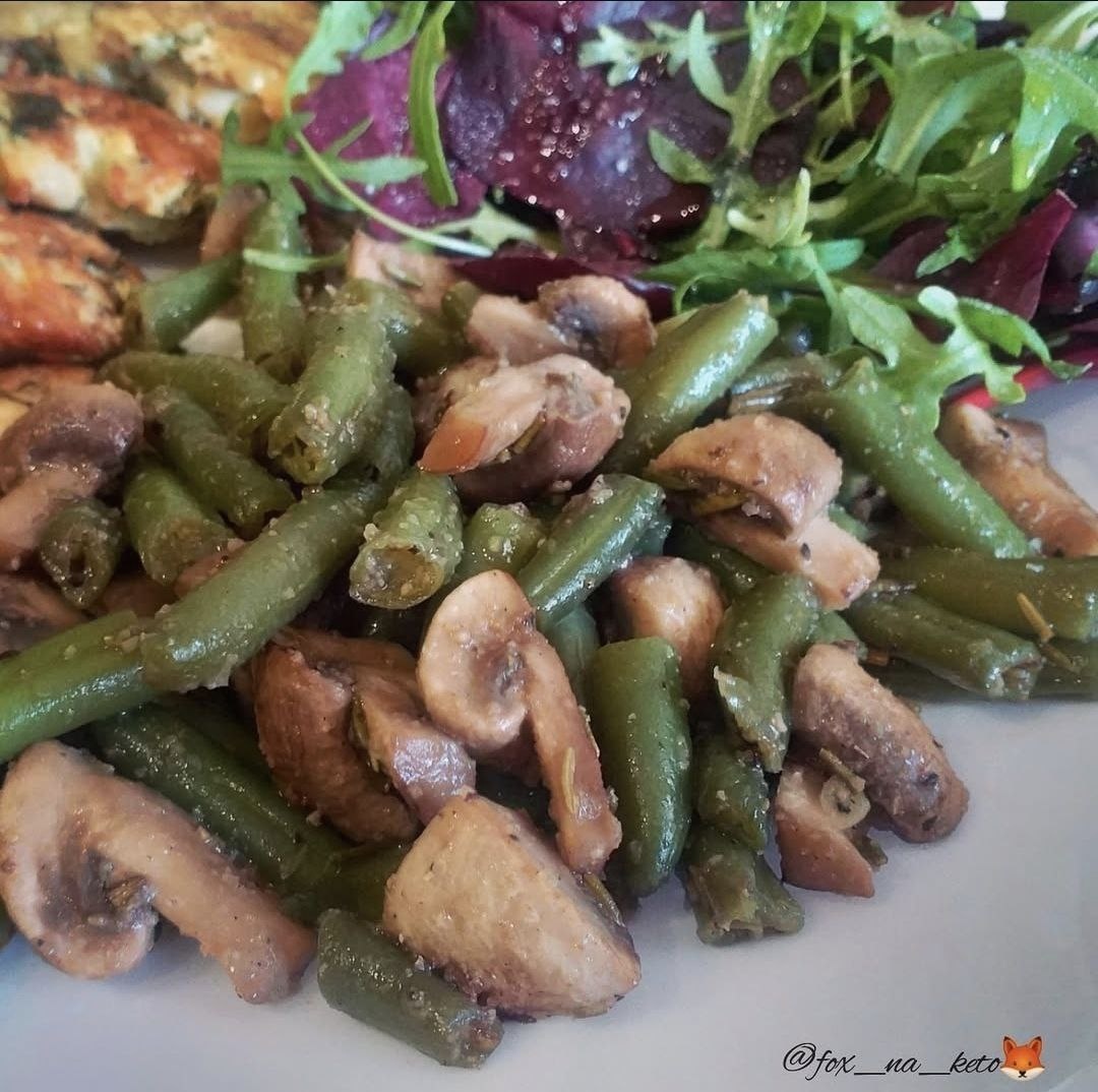 СТРУЧКОВАЯ ФАСОЛЬ С ГРИБАМИ Ингредиенты: 📌 стручковая фасоль 400 гр 📌 шампиньоны некрупные 400 гр 📌 соль, перец по вкусу 📌 кокосовое масло для жарки 📌 сушёный чеснок 1 ч.л. 📌 розмарин сушёный 1 ч.л. Приготовление: Шампиньоны разрезать на 4 части, обжарить на сильном огне пару минут. Затем добавить стручковую фасоль, специи, соль, перемешать и жарить до готовности (минут 7) Быстрый и невероятно вкусный гарнир к мясу. ПРИЯТНОГО АППЕТИТА