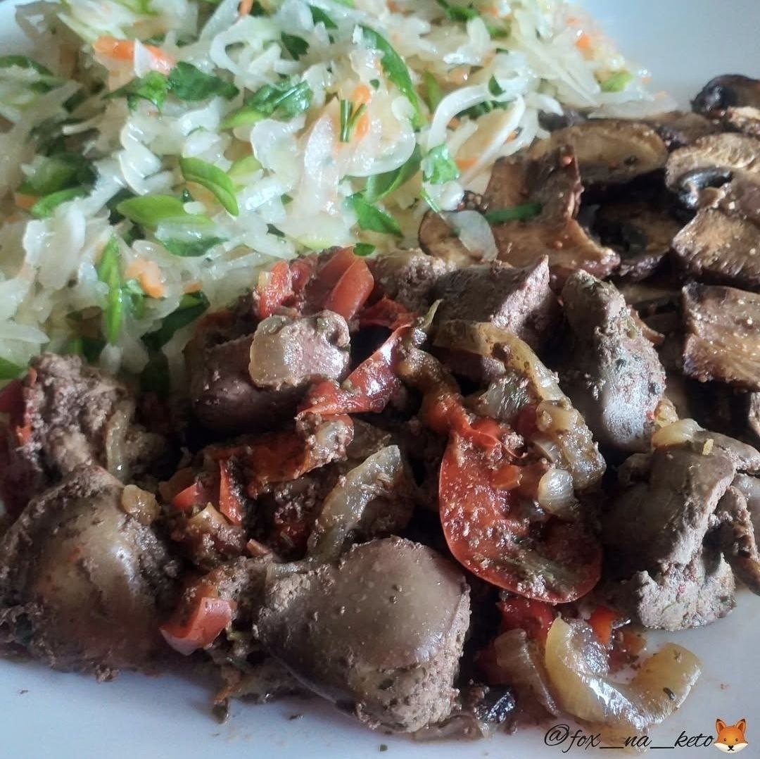 КУРИНАЯ ПЕЧЕНЬ С БОЛГАРСКИМ ПЕРЦЕМ Ингредиенты: 📌 печень куриная 600 гр 📌 лук репчатый 1 шт (~120гр) 📌 перец болгарский 200 гр 📌 соль, перец по вкусу 📌 жир или масло для жарки Приготовление: Лук нарезать четверть кольцами, обжаривать в масле до мягкости и золотистого цвета. Печень нарезать на небольшие кусочки, добавить к луку. Обжарить на среднем огне 5 минут, несколько раз перевернуть за это время. Перец нарезать соломкой (можно использовать замороженный), добавить к печени. Посолить, поперчить, можно посыпать любимыми специями. Хорошо перемешать, накрыть крышкой и тушить 15-20 минут, периодически помешивая. ПРИЯТНОГО АППЕТИТА