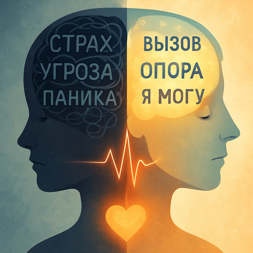 "Мышление может быть рабом страстей, их слугой, но оно может быть и их господином". Лев Выготский Почему один человек на стресс реагирует паникой, а другой - азартом? Один - болеет, уходит в апатию и соматические симптомы, а другой - собирается, действует и даже получает удовольствие от вызова? Ответ не в характере, не в "силе воли" и даже не в уровне подготовки. Ответ - в мышлении. А точнее, в глубинной установке: "Я справлюсь" или "Я не справлюсь". Вот, что показали исследования, где участникам эксперимента предложили поучаствовать в стрессовой ситуации. До начала - замерили физиологические реакции: пульс, давление, тонус сосудов, объём кровотока. Первая группа восприняла ситуацию как угрозу. У них: - усилился сосудистый тонус - резко подскочил пульс - давление повысилось - но кровоток снизился Физиологически это состояние бессилия, тревоги и готовности «замереть». Вторая группа восприняла ту же ситуацию как вызов. И физиологически, на уровне тела отреагировали иначе: - пульс стал вы