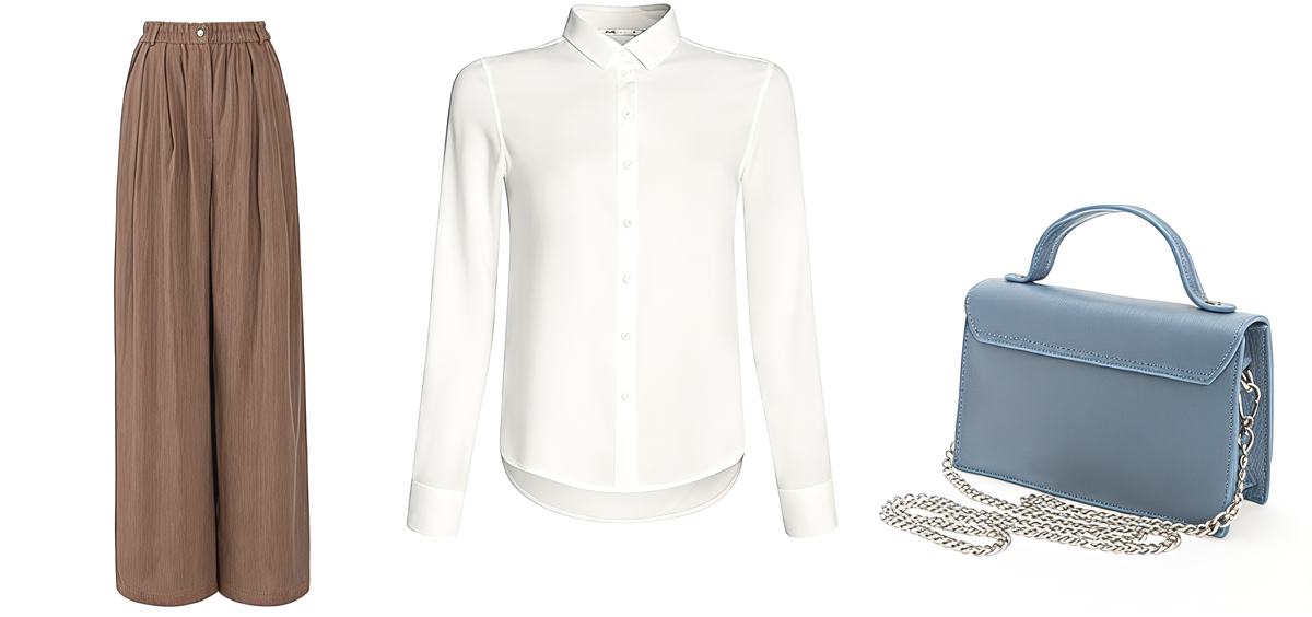 Вот возьмём первое сочетание — с модным Mocha Mousse. Это тот самый "мокко-мусс", который Pantone объявил цветом 2025 года. Представьте: коричневые брюки, белоснежная блуза, а к ним серо-голубая сумочка. Всего три цвета, а какая элегантность! Причём работает в любом возрасте — проверено.