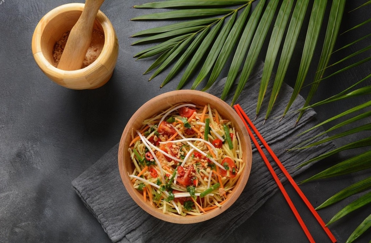 Что вы представляете, когда слышите слово «папайя»? Наверняка, что-то оранжевое, нежное, сладкое, тающее во рту… Десерт. Фрукт для смузи. А теперь представьте, что в Таиланде, услышав «папайя», местные жители скорее представят хруст, остроту и соленый вкус. Как так? Все дело в том, что для своего культового салата Сом Там тайцы используют не спелую, а ЗЕЛЕНУЮ папайю. И это меняет всё. В чем секрет зеленой папайи? Сом Там — это алхимия в ступке.