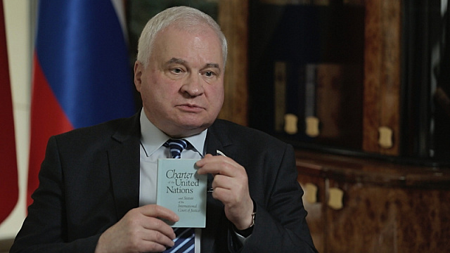 – У меня в руках маленькая голубая книга. Это Устав Организации Объединенных Наций. Он был подписан 80 лет назад, 26 июня 1945 года. От имени нашей страны его подписал заместитель министра иностранных дел Андрей Громыко.
