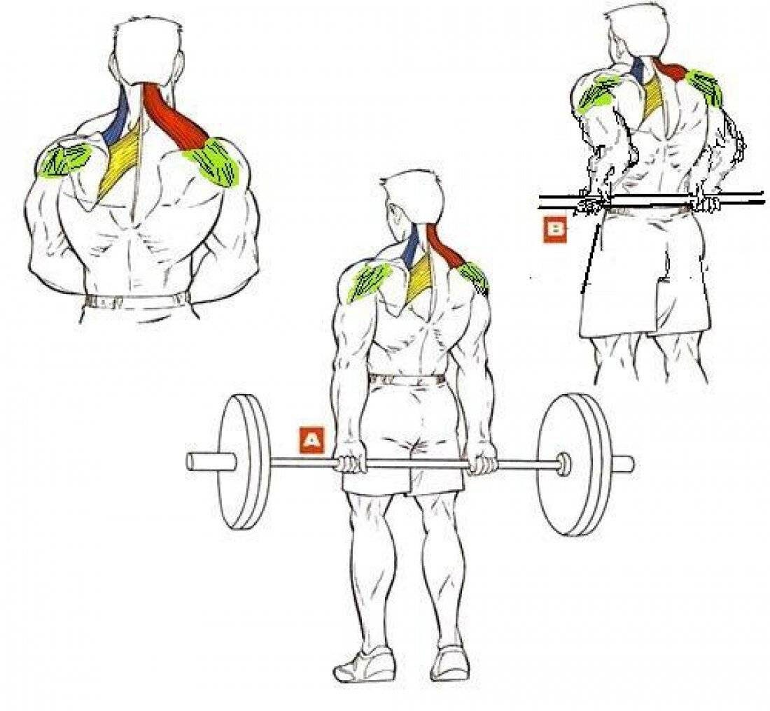 Совет: для роста мышечной массы следует выполнять упражнение в пределах 10–15 повторений по 3–4 подхода, но только с точной техникой без помощи плеч, как при шрагах.