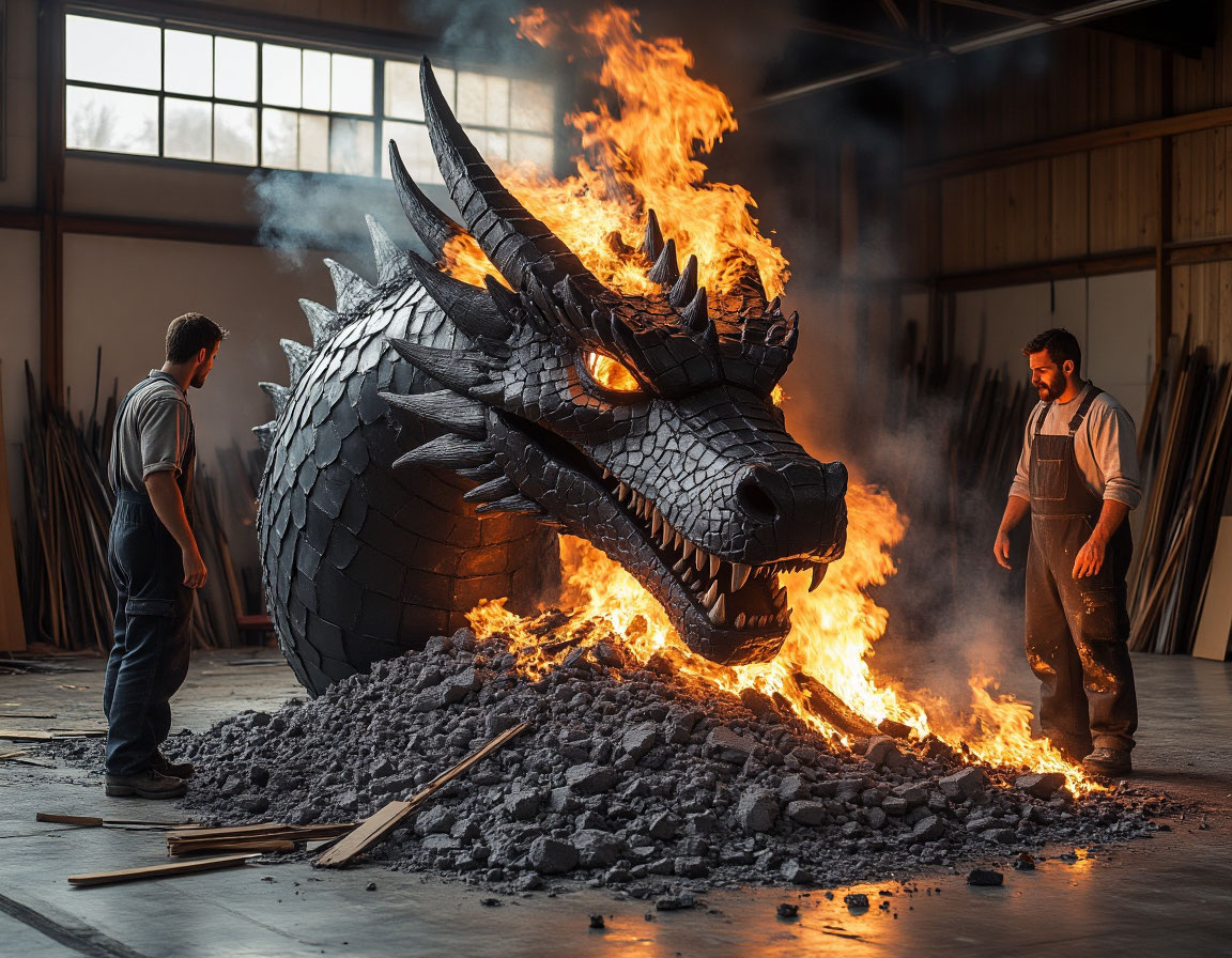 – Безопасность, да?! – Леонид ткнул пальцем в обугленную стену. – Холодный пар, говоришь?! А это что?! Самовозгорание электропроводки из-за перегрузки в дешевом блоке управления?! Да ты чуть мастерскую не спалил, кретин! А материал? Ладно весь каркас мини-дракона – в утиль! Это черт с ним. Но ты спалил весь материал на большого дракона, придурок. Где мы его теперь возьмем? На какие деньги? И сроки?!! Сроки, Миша! У нас не 2 месяца, а три недели до сборки основного каркаса!