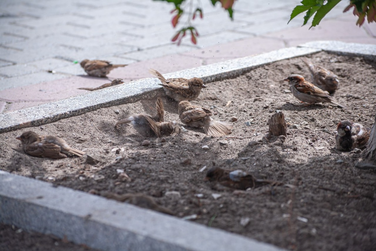 Воробушки тоже любят принимать ванны (только делают это в земле) 🚿