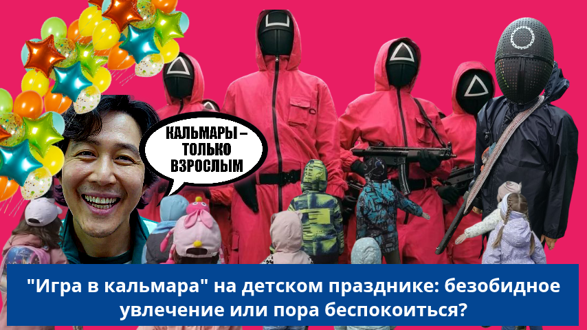 Яркий детский праздник, песни, танцы, любимые герои мультфильмов и кино – казалось бы, что может омрачить эту идиллическую картину? Однако на одном из таких мероприятий внимание привлек нетипичный персонаж – охранник из нашумевшего южнокорейского сериала «Игра в кальмара». Случайность? Возможно. Но случайность, которая заставила задуматься: не слишком ли далеко зашла популяризация жестокого контента в детской среде?