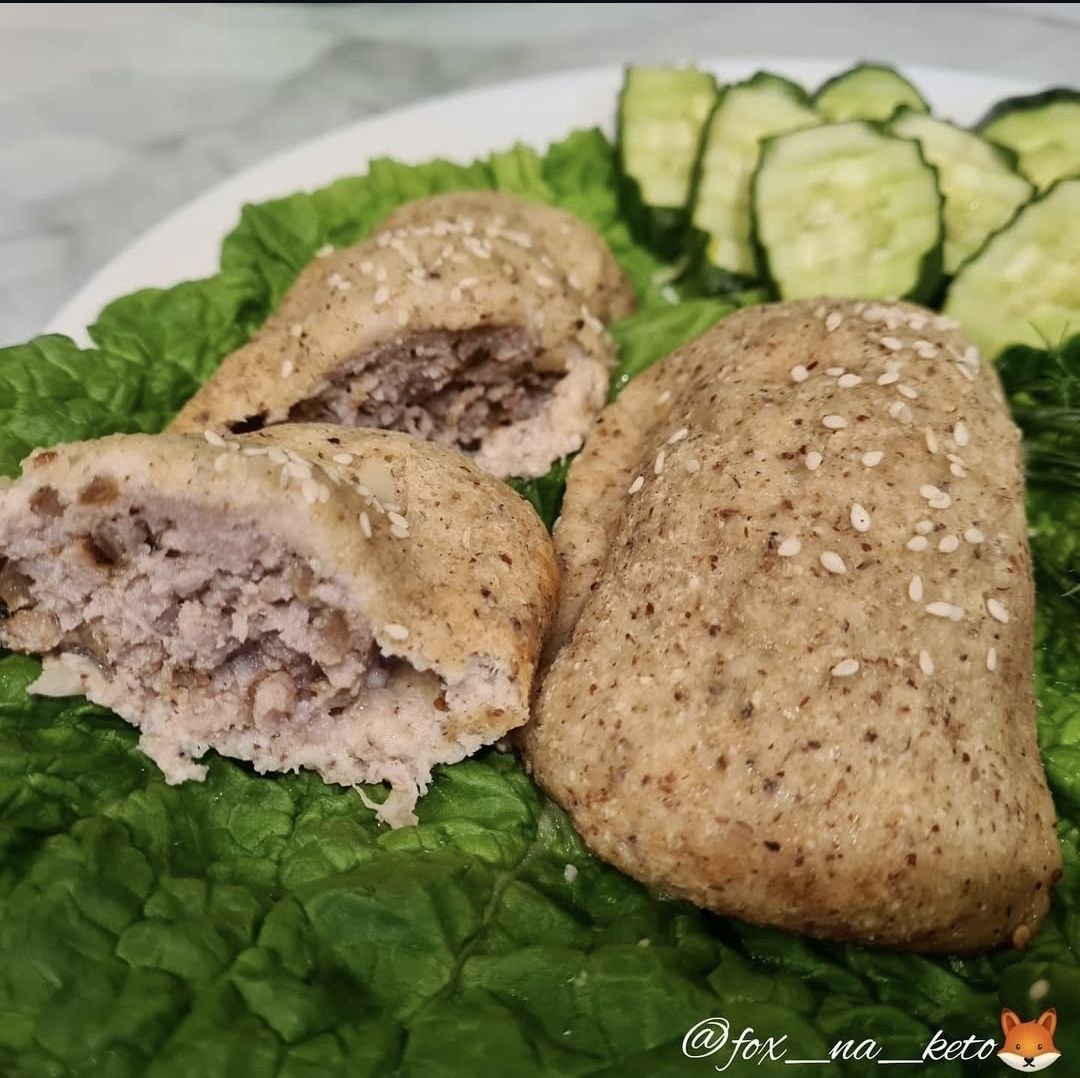 ПИРОЖКИ (САМСА) Ингредиенты: Для теста: 📌 цветная капуста 500 гр 📌 сыр сулугуни 150 гр 📌 молотый фундук(миндаль) 60 гр 📌 кокосовая мука 30 гр 📌 псиллиум 10 гр 📌 разрыхлитель 1/2 ч.л. 📌 яйцо 1 шт Для начинки: 🥩 фарш 400 гр 🥩 лук 1 шт 🥩 соль, специи по вкусу 🥩 жир для жарки Приготовление: Лук порезать кубиками, обжарить на жиру до золотистого цвета. Остудить, смешать с фаршем и специями, хорошо перемешать. Капусту отварить 3-5 минут, пюрировать блендером, в горячее пюре добавить сыр и хорошо перемешать. Отдельно смешать все сухие ингредиенты. Добавлять их к капусте постепенно, хорошо перемешивая. В конце добавить яйцо и замесить тесто. Оставить на 15 минут. На силиконовом коврике пальцами сформировать круг, равный по толщине, выложить фарш и сформировать самсу или пирожки (см. комментарии). Посыпать кунжутом. Выпекать на силиконовом коврике в предварительно разогретой до 170-175 °С духовке ~40 минут, смотрите по своей духовке. На 1 шт брала 85 гр теста и 55 гр фарша, получи