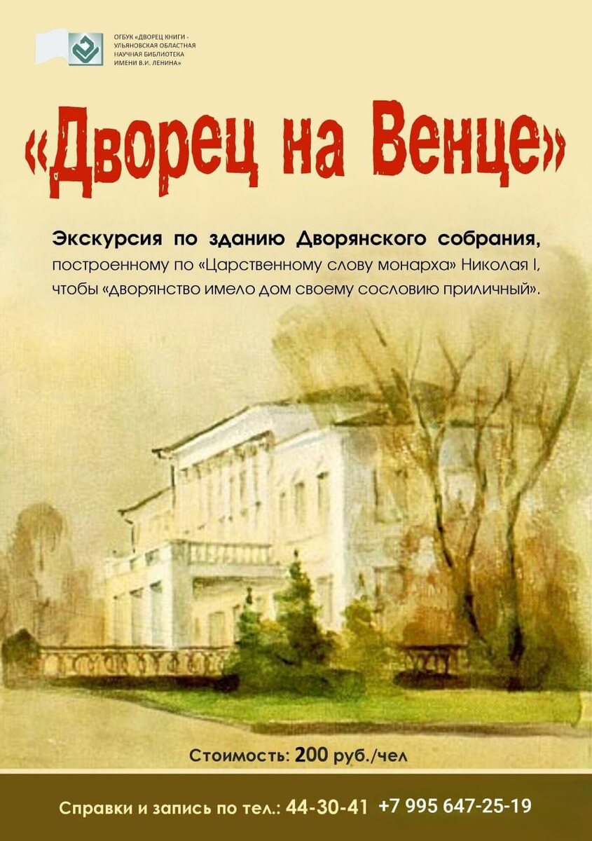 Экскурсия "Дворец на Венце" 🗓️ 24 июля 18:30 📍 фойе исторического корпуса Дворца книги Экскурсия по зданию Дворянского собрания, построенному по «Царственному слову монарха» Николая I, чтобы «дворянство имело дом своему сословию приличный». Дворянскому дому судьбой было уготовано второе рождение, ведь после страшного пожара 1864 года сохранились лишь стены и частично перекрытия. В 1867 году Дворянское собрание было восстановлено практически в первозданном виде. Тогда современники именовали это здание архитектурным чудом, а главной его жемчужиной называли бальный зал, украшенный изящной лепниной. В Дворянском собрании проводились деловые заседания, встречи, обеды, балы. Экскурсовод Наталья Лукашкина приоткроет много тайн и забытых секретов этого наполненного историей здания, которое прошло через века. 🏷️ 200₽ Билеты 🎟️ Запись и справки по тел: (8422) 44-30-41 или +7 995 647-25-19 #24июля25