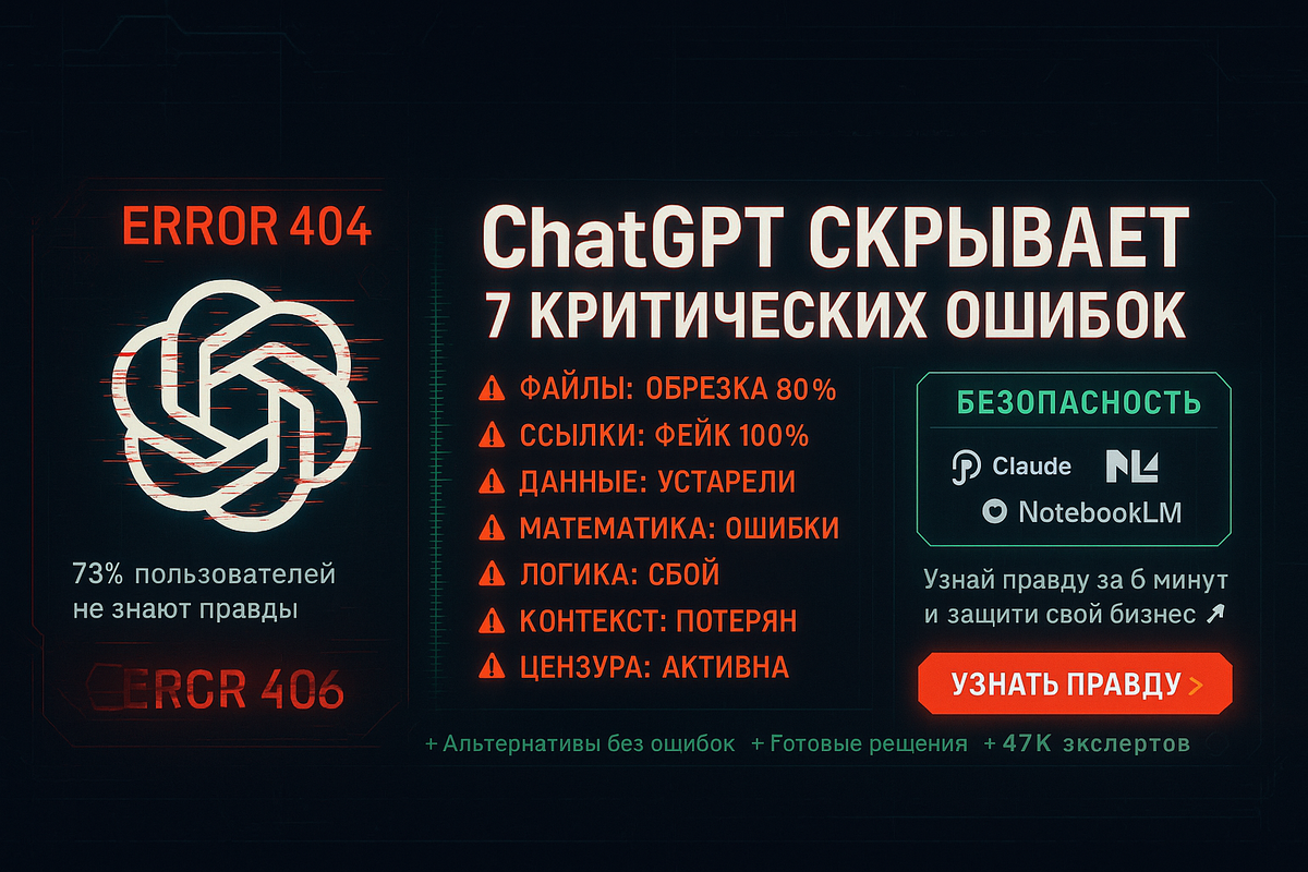⚡ Критические ошибки ChatGPT в работе с документами, файлами и данными. Проверенные альтернативы и решения для эффективного использования ИИ.