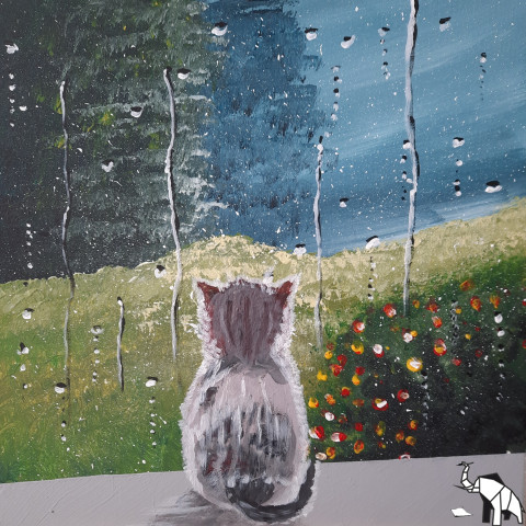 Серый комочек удобно расположился на подоконнике. Дождь начался тихо, с редких, нерешительных капель, потом усилился, отбивая барабанную дробь. Котёнок замер, его взгляд метался по залитому стеклу, пытаясь разглядеть каждую каплю. Ох, уж эти озорники! Они скользили, торопились вниз, словно соревнуясь, кто быстрее. И в каждой такой капле котёнок видел своё отражение – немного искажённое, немного вытянутое, но такое забавное. Ещё пару дней назад его мир был равнодушным и серым. А теперь… теперь он в тепле, где каждый шорох был дружелюбным, а каждый запах – съедобным. И тут взгляд котёнка зацепился за клумбу. Там, не обращая внимания на дождь, танцевали яркие солнышки. Красные, оранжевые, жёлтые. Капли дождя ударяли по лепесткам, заставляя их вздрагивать, и от этого цветы казались живыми. - Трусишка, – смеялись они над котёнком, – Иди к нам, чего в доме прячешься? Котёнок прищурился. Кажется, эти цветы бросали ему вызов. Он протянул лапку к стеклу, пытаясь дотронуться до этих ярких пятен.